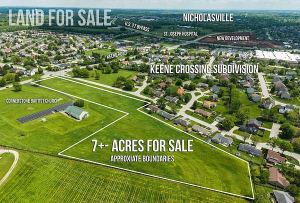 Est $3,147/moThis property boasts high visibility with direct frontage on Keene Road at the entrance to Keene Crossing. Conveniently located less than one mile from St. Joseph Hospital and the rapidly growing US 27/169 corridor, it offers exceptional access to amenities and a major thoroughfare. Currently situated in the county, the City of Nicholasville has expressed willingness to annex the property and approve R-1 residential zoning - opening the door for residential development. Approximately 7 acres.