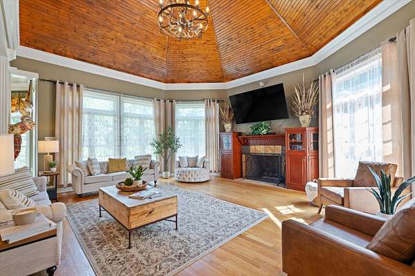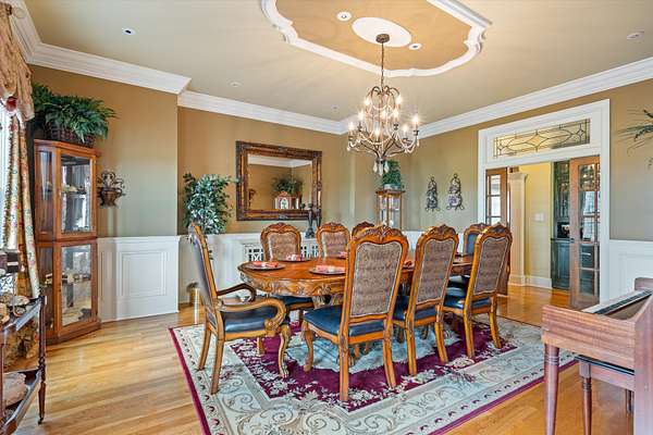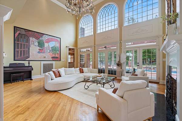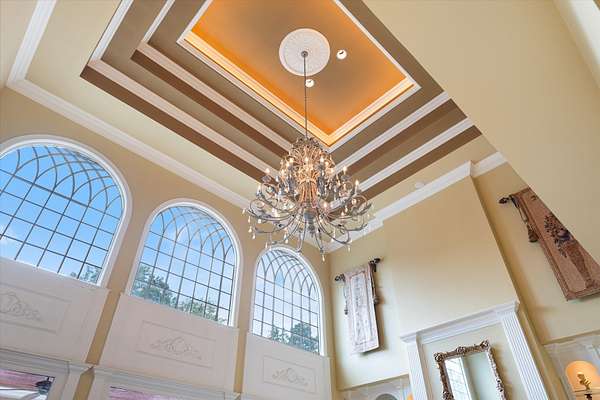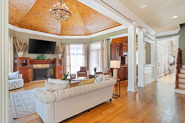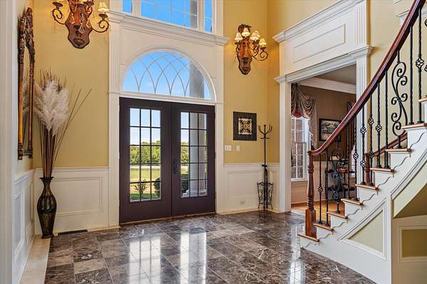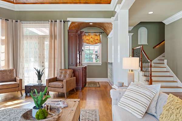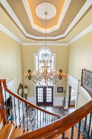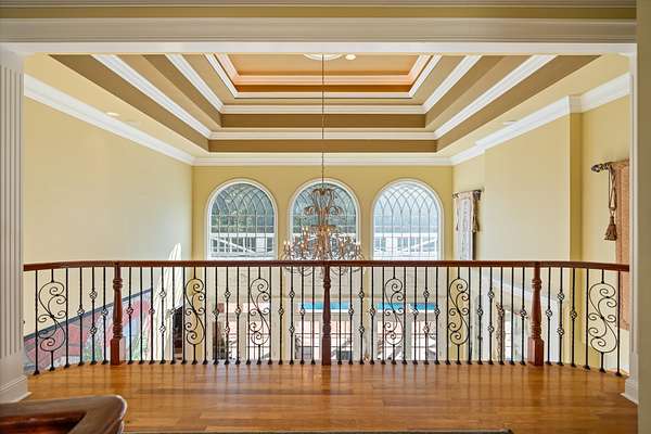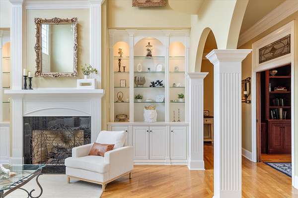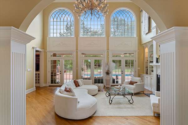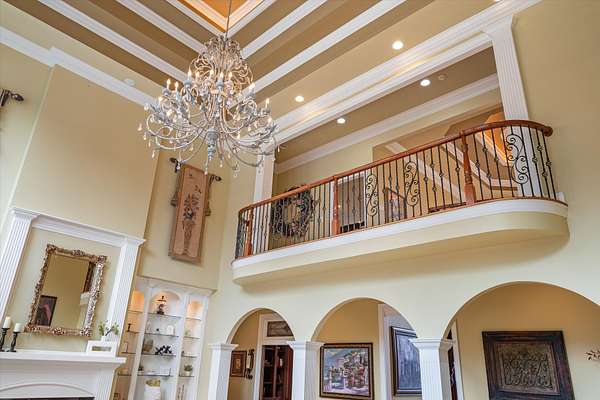 Spanning nearly 6,000 square feet, this remarkable home showcases exceptional craftsmanship and elegant design throughout. Soaring 25-foot ceilings create a grand first impression, while intricate crown molding, graceful arches, and stately columns add timeless sophistication to every room.