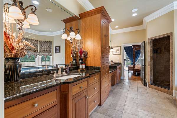 Step outside and discover a true private oasis. Enjoy the fully equipped outdoor kitchen, relax by the saltwater pool, or stay active with your own tennis and basketball court. Surrounded by lush landscaping and open space, the property provides exceptional privacy while remaining close to everything you need.