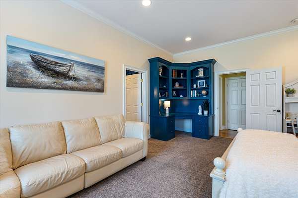 The home features four spacious bedrooms, plus a potential fifth bedroom, offering flexibility for family, guests, or additional living space.