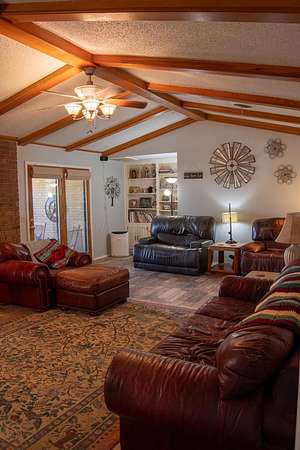 You won't want to miss this HORSE PROPERTY that has all the must-haves!! This home sits on 4 acres with horse facilities, large shop, RV Garage, and a she-shed! The sauna and hot tub in the shed will convey. This property has a sprinkler system that waters the entire front of the property, including the peach and pecan trees! The recent upgrades in this home will save you so much in the long run.. recent upgrades include new 5 ton HVAC and water heater in 2025, all new windows about 3 years ago, new attic insulation, a 5 year old roof, a new asphalt driveway, custom hickory cabinets and a beautiful granite countertop in the kitchen. In addition to the 3 bedrooms, 2 bathrooms, and spacious living area, there's a large basement that could serve as an extra bedroom!