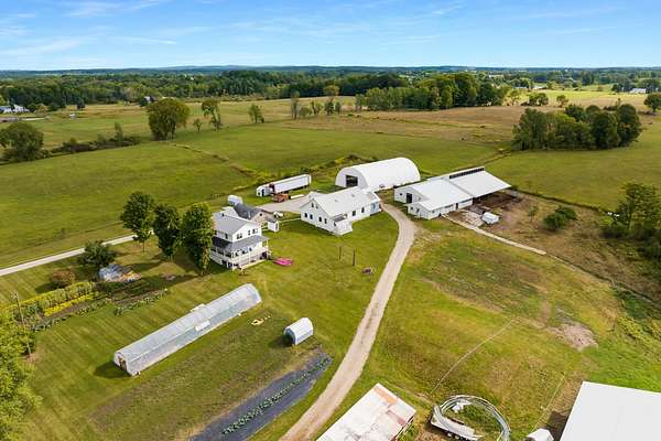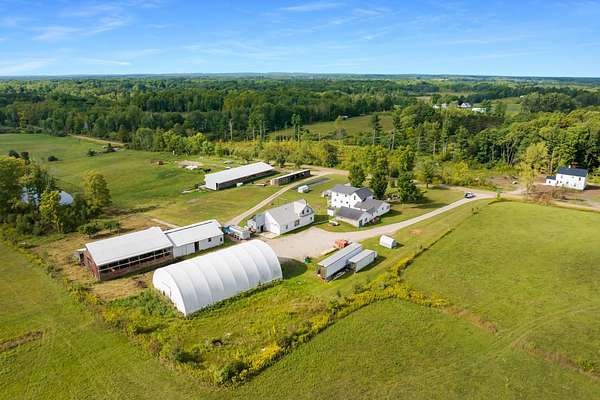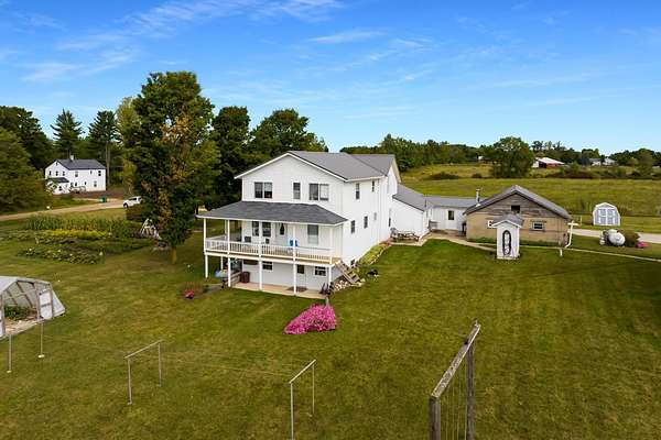 Come see this nicely cared for home on 50 well groomed acres and an outbuilding for most every task! With 5 bedrooms & an office, large pantry off the spacious island kitchen, very nice hardwood and laminate flooring throughout the home, large master bedroom on the main floor, 3 bathrooms (1 on each level), very large storage area, (approx. 24'X30', used to be a garage...could be again if you so choose!), a new roof, a walk-out basement, and an awesome covered wrap-around porch where you'll love sitting and taking in the panoramic view overlooking a pond and the majestic setting!! The land is partially wooded, with large fenced in pastures, the pond ,and...Out-buildings galore! The workshop is 32'X50', insulated with an overhead door, and an apartment upstairs with a bathroom & one bedroom! The Hoop building is 50'X80'. The horse barn is 36'X48' and has a 16'X48' lean-to. (see 'MORE'...) Another storage shed is 16'X80', the hay storage building is 28'X120' (has water hooked up to it), and there is also a 16'X80' greenhouse! Fabulous set up for a hobby farm, horses, cows, or whatever your critter of choice may be!! All located just about 15 minutes south of Cadillac, and surrounded by many lakes and rivers and multiple outdoor activities!!