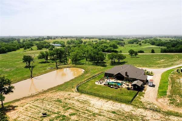 WOW! The North Texas Retreat you've been waiting for! This stunning property has something for almost everyone! First, the property sprawls over 10 acres located between Alvord and Decatur and has the amenities you are looking for! The property features an absolutely gorgeous Schedcik custom home that was completed in 2021-2022. The home stuns with just over 3900 sq ft, large picture windows overlooking a massive back patio and a 12 foot deep pool that has features such as a grotto, waterfall, attached hot tub, and swim up table! The home is a 3 bed each with full ensuite bath, wide hallways and doorways, workout room, Media room with a wet bar and full bathroom next to it Which could function as a 4th bedroom if needed, very well appointed high end finishes throughout such as hardwood floors, solid doors, storm room built in, butler pantry with grocery door from the garage and commercial grade kitchen appliances! The appliances are a 6 burner gas cook top, convection oven with warming drawer, built in refrigerator, dishwasher, and microwave in the island. If you don't want the pool company in the house, the separate she shed or pool house has a small kitchenette area bathroom, or a place to get out of the sun. There is no shortage of space on this property. The home has oversized 3 car garage that will fit a 1 ton truck and full size SUV comfortably, a detached shop has roll up doors for additional storage for mowers or farm implements. If you have frequent extended stay guests, the shop also features its own living quarters with a 1 bed 1 full bath apartment with living room, kitchen and its own covered patio to enjoy the morning coffee! This property has so much to offer. Ample acreage with plenty of room for activities, a phenomenal place to entertain friends and family, have a few animals, or just sit back and relax by the pool at your home on the range! Option for additional 84 acres of land as well!