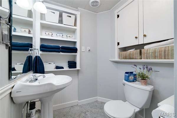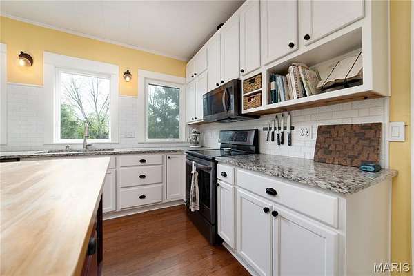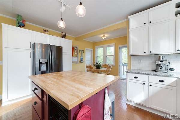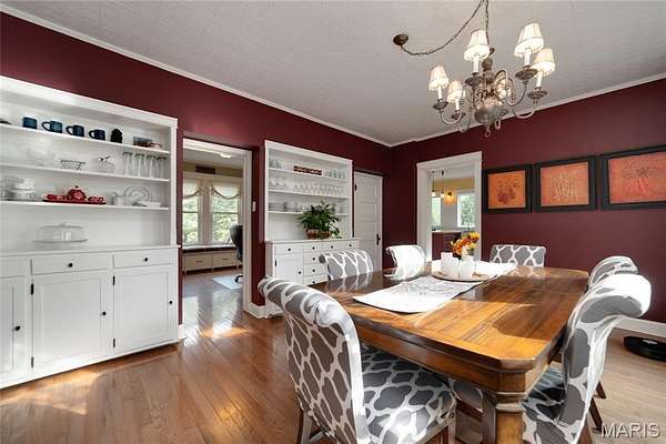 Welcome to this beautifully updated 5 bedroom farm house, sitting on 3 wooded acres with shared pond at the back of the property! The home, originally built in 1919, was moved onto a new foundation in 2004. You will love the classic country feel in heart of OFallon. Step up onto the large covered front porch, the perfect place to listen to the birds singing as you enjoy your morning coffee and hear the crickets as you relax in the evening. Enter into the front foyer with elegant spindled staircase & hardwood flooring that carries throughout the main level. Front living room features built-in bookcases, fireplace and expansive picture window providing tons of natural light. Formal dining room is perfectly placed between the living room & kitchen offering a large bay window plus custom hutch buffets. Imagine the wonderful holidays that will be hosted in this space! The kitchen is a chef's dream featuring expansive granite countertops, beautiful white cabinetry, large center island w/ butcher block top, black stainless appliances and elegant tiled backsplash. Additional storage cabinetry around the refrigerator and eat in breakfast area complete the space. Mud room off the kitchen leads out to the wrap around deck. A great spot to host a BBQ with all your friends overlooking the wooded lot. Main level offers a bedroom, perfect for a live in relative or study plus a half bath. Head up the back staircase towards the primary bedroom suite w/ two walk-in closets & beautifully appointed full bath w/ full porcelain tiled walk-in shower & designer vanity. Bonus room separates the primary from three more generously sized bedrooms & another updated full bath. The unfinished walk-out full basement has a rough-in bathroom and is ready and waiting to be finished for even more livable space. Updated systems include hot water heater (2023), HVAC - heat pump system (2016), architectural roof (2023) plus vinyl siding with enclosed soffits and vinyl windows. Schedule your private showing of this one of a kind property today!