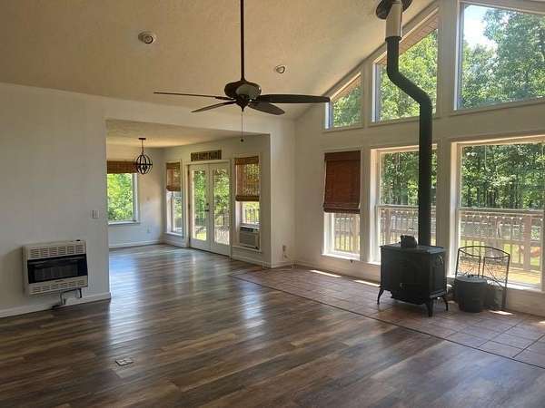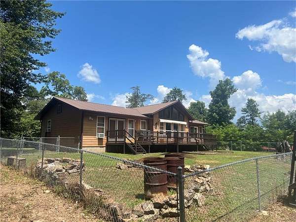 This 2 bedroom, 2 bathroom self sustainable home perfectly situated on 35 acres that borders Ozark National Forest Land on the south side in the heart of Jasper, Arkansas. Tucked away in a quiet and peaceful setting, this property offers unmatched privacy surrounded by beautiful hardwood trees and abundant wildlife. The home is connected to the electric grid for convenience, yet thoughtfully equipped with a backup solar power system for energy independence. A rainwater catchment system with 5000 gallons of storage ensures a sustainable water source year-round. Make use of the existing gardens, chicken house, and be within steps of the National Forest for hunting.