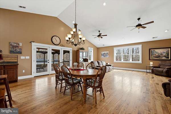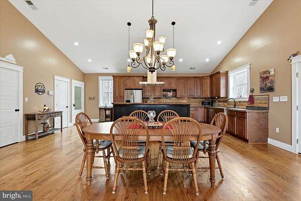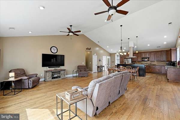 Welcome to Peaceful Pastures. Rarely does a property come along that so effortlessly blends wide-open country living with thoughtful custom design. The property sits on 10 fully electric fenced acres, beautifully maintained acres, this exceptional barn-style residence offers a lifestyle opportunity for equestrian enthusiasts, homesteaders, car collectors, or anyone craving space, privacy, and possibility - with the added potential for income generation by leasing the barn and/or land. The upper level offers approximately 2,400 square feet of beautifully designed living space and unfolds into a wide-open floor plan anchored by soaring vaulted ceilings and walls of natural light. The expansive kitchen is both functional and striking, seamlessly overlooking the family room and featuring cement countertops, custom cabinetry, a deep farmhouse sink, and an exhaust hood over the cooktop. The impressive 17-foot cathedral ceilings create volume and architectural drama rarely found at this price point. The primary suite feels like a private retreat, complete with a generous walk-in closet and a spa-inspired en-suite bath boasting dual vanities, a clawfoot soaking tub, and an oversized custom shower designed to impress. Two additional bedrooms and a well-appointed full hall bath complete the main level, while a full bathroom in the garage adds everyday convenience. Outside, the lifestyle truly shines. A beautifully updated asphalt driveway welcomes you home, while the newly stamped concrete patio and newly screened porch provide peaceful spaces to take in the scenic views. The expansive acreage offers abundant room for gardening, hobby farming, hunting, outdoor entertaining, or simply enjoying the quiet rhythm of country life. Equestrian buyers will appreciate the well-equipped three-stall barn with tack room and dedicated hay storage. Car enthusiasts and hobbyists will be equally impressed by the oversized garage featuring in-and-out oversized doors and a dedicated heater. The versatile lower level offers endless flexibility - ideal for a workshop, gym, additional garage space, or creative studio. Whether your vision includes horses, homesteading, gardening, hunting, multi-use garage space, or simply room to breathe, this one-of-a-kind property delivers versatility, beauty, and opportunity in one compelling package.