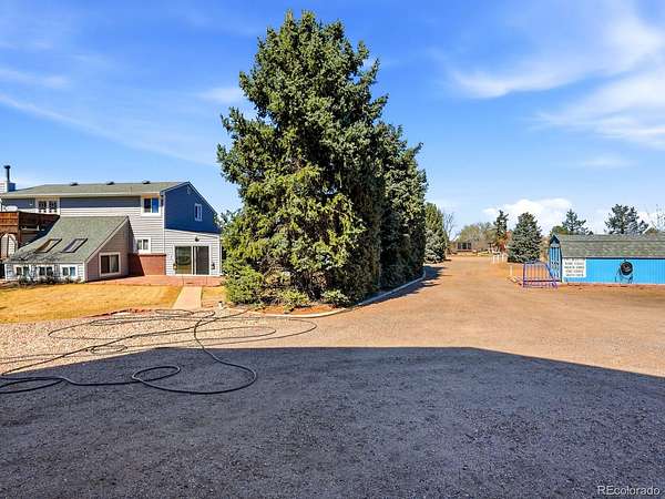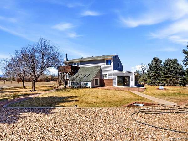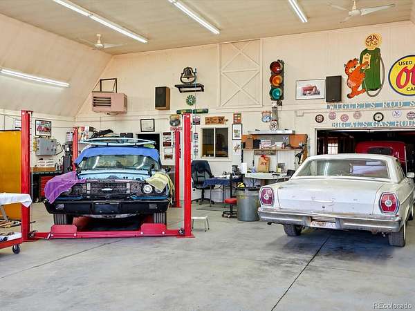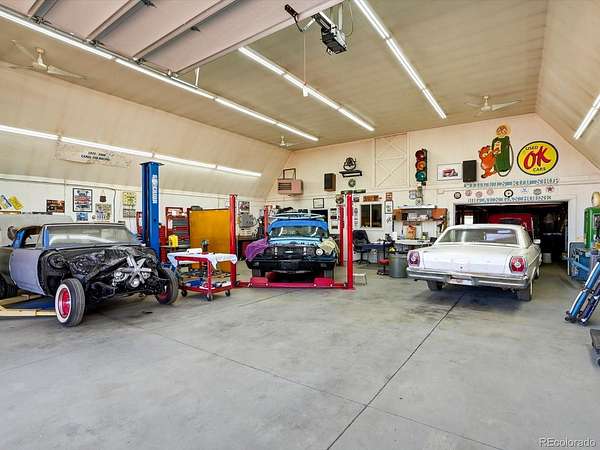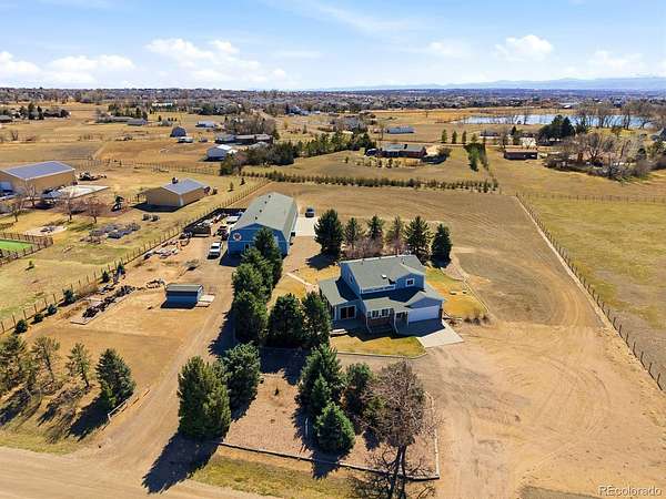Set on 2.52 acres in Wadley Farms Third Filing, this is the kind of property that takes work from home to a whole new level. This property features 3,333 sqft of living space along with 6,080 sqft of auto work shop space. The incredible heated drive-through shop/garage with insulated walls and ceiling, separate electric and gas meters complete with an upper-level workshop area, half bath, and electric water heater, is an exceptional space for anyone who is taking their shop game to the next level. The drive-through design adds even more convenience. The four bed three bath home is surrounded by mature trees and features vaulted ceilings, two sunrooms, a fire place, primary with a a five piece en-suite bath, an unfinished basement awaiting your value add and stunning mountain views. One sunroom serves beautifully as a secondary dining space, while the other is ideal for an office, sitting room, or creative retreat. Additional highlights include fiber optics in the house, sprinkler system around the home, well pump replaced in September 2025, roof just 2 years old, and AC, furnace, and water heater all installed in 2015. Residents of Wadley Farms Third Filing also enjoy access to the neighborhood lakes for non-motorized recreation. Tucked into a quiet, secluded setting with easy access to E-470 and Highway 125, this property offers the best of both worlds, room to breathe without giving up convenience. Schedule your showing today!