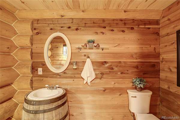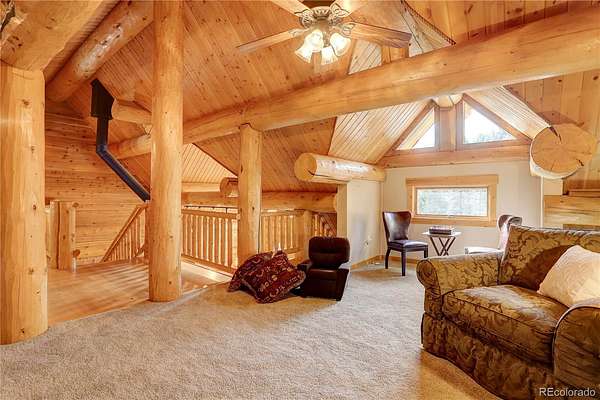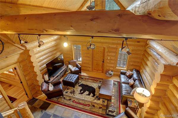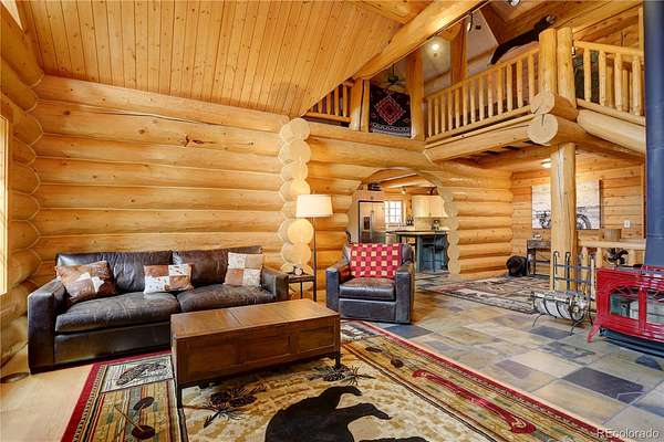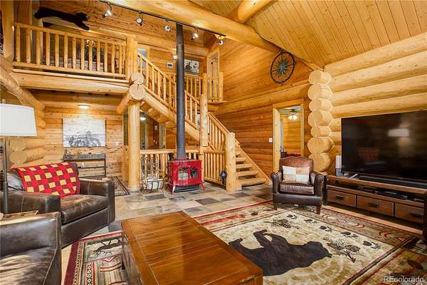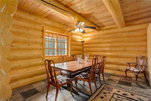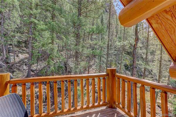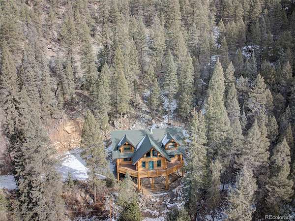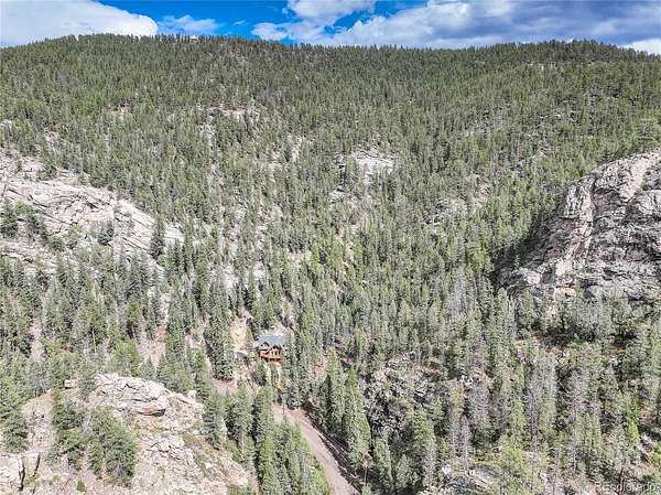 BACK ON MARKET as buyers' contingent home didn't sell! Perfect Colorado log home! Immaculate log, A-frame, 3 bed, 4 bath home on 29+ acres with fantastic elk creek views. Mountain charm abounds with pride of ownership, meticulous maintenance & careful attention to detail. Move right into this gorgeous home! Upon driving up the private driveway you are welcomed by the soothing sound of the flowing creek & breathtaking rock outcroppings. The vaulted 2 story ceilings with ample windows make this open floor plan light & bright. The beautiful spacious kitchen features wood cabinets, NEW island, NEW leathered granite counters, NEW backsplash & NEW SS appliances. The large dining room & living room with NEW freestanding wood stove offers the perfect flow for entertaining family & friends. Immerse yourself in the Colorado mountain lifestyle on the large deck while enjoying views of elk creek, stunning rock outcroppings & abundant wildlife. The main floor offers the primary ensuite bedroom featuring 5-piece ensuite bath with soaking tub. Charming powder room with barrel sink & convenient main floor laundry room (NEW washer & dryer included). The upper level features a bedroom with balcony & freestanding gas fireplace (closet in bathroom), full bath & bonus room. The lower level features an ensuite bedroom with large, walk-in closet & full ensuite bath, bonus room (or non-conforming bedroom) & direct garage access. Great layout for roommate or multi-generational living. Garage has storage, work bench area, window & utility room with sink. *** NEW CLASS 4 IMPACT RESISTANT ROOF (potential insurance discount). NEW exterior clear coating, NEW gutters, NEW garage doors, NEW upper deck stain & NEW radon mitigation system. This property is a serene, luxury mountain resort!!! Plenty of room for RV, boat & mountain toys. Fenced dog run. Close to 285 for convenience & accessibility. County maintained roads & top ranked schools. Welcome home to your quintessential Colorado dream home!