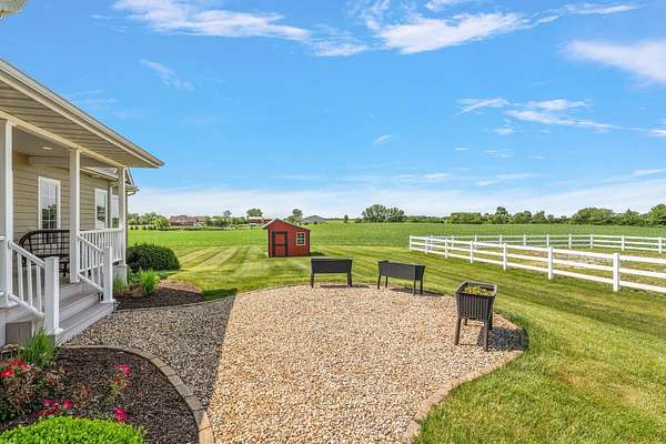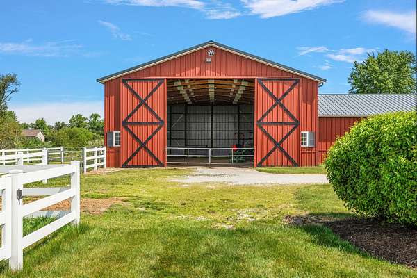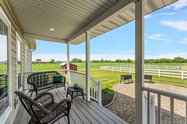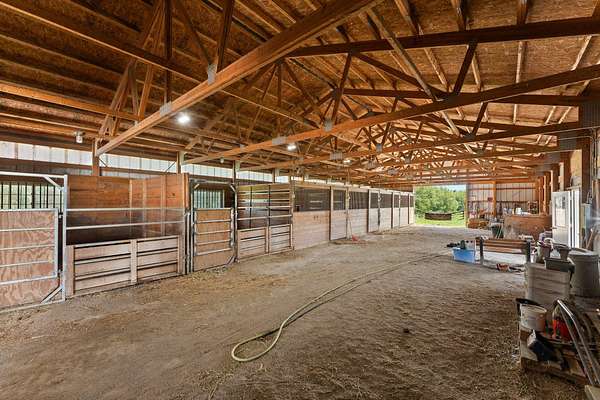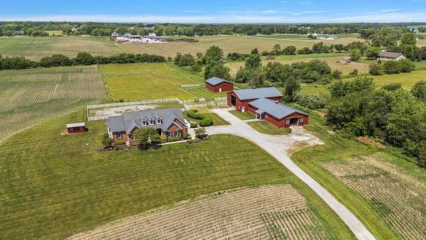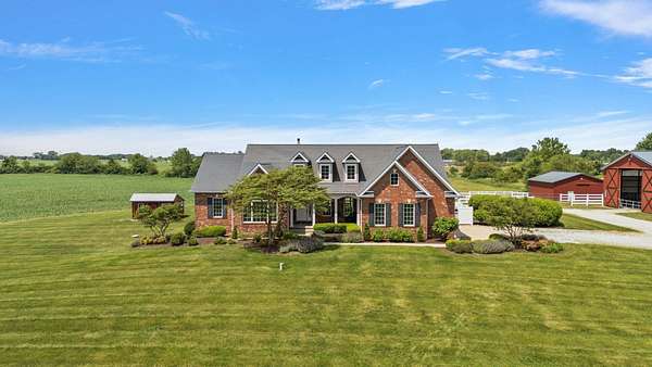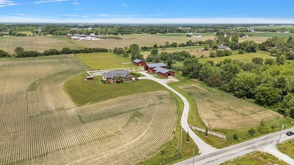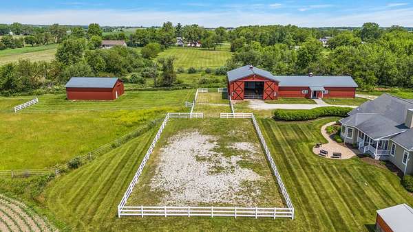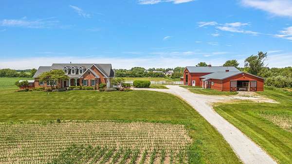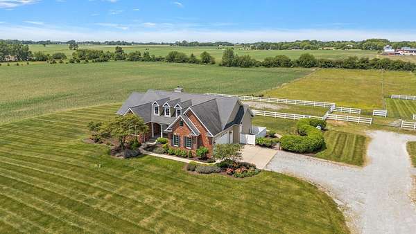 Experience the best of country living with city convenience at this gated 20-acre equestrian estate near the Illinois-Indiana line. Perfectly positioned for commuters, yet surrounded by peaceful farmland, this property offers the rare combination of privacy, productivity, and purpose. At the center sits a solid, custom brick ranch with cathedral ceilings, open-concept living, and Hickory hardwood floors bathed in natural light. Step out to panoramic views of rolling acreage, where horses graze and wildlife roams. Enjoy mornings with coffee on the porch, evenings under wide Indiana skies, and the freedom of space you simply can't find closer to Chicago. For equestrian enthusiasts, the property is thoughtfully laid out with a Morton indoor arena, outdoor arena, six stalls, another Morton building for Hay storage or more, and usable pasture/hay fields. Instant income from the surrounding farm fields utilized for grain farming. The home is equipped for resilience with a full-farm generator and a 2021 furnace, ensuring comfort year-round. A separate well is utilized by the barns, room to grow and unfinished loft space to utilize as you see fit. Indiana's lower taxes paired with proximity to Illinois make this property an exceptional investment for those seeking both lifestyle and practicality. This isn't just a home--it's a once-in-a-lifetime opportunity to create the life you've been imagining: room to breathe, space to grow, and a legacy of living connected to the land.