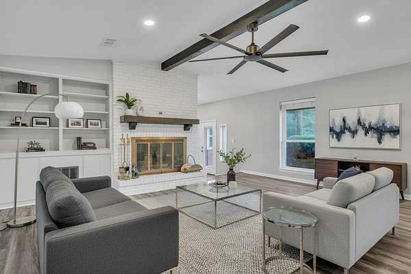 COMPLETELY RENOVATED HOME on 6.91 Acres in Rusk County - Kilgore ISD This stunning 4-bedroom, 2.5-bathroom home has been BEAUTIFULLY UPDATED from TOP TO BOTTOM and is MOVE-IN READY! Step inside to find LUXURY VINYL PLANK flooring throughout the home, complemented by a gorgeous ceramic tile backsplash in the kitchen. The kitchen is fully outfitted with stainless steel appliances, a LARGE WALK-IN PANTRY, LARGE ISLAND for meal prep & plenty of storage as well as plenty of space for cooking and entertaining. The living room features a cozy wood-burning fireplace, while French doors open to a fenced backyard--perfect for both relaxation and gatherings. The spacious split-bedroom layout ensures privacy, with a HUGE 22' x 20' PRIMARY SUITE offering a primary bathroom with a walk-in closet, double vanity, large eggshell design soaking tub, and a large walk-in shower. Additional updates include a BRAND NEW ROOF and two HVAC units, giving peace of mind for years to come. The property sits on 6.91 BEAUTIFUL and UNRESTRICTED acres, along with a workshop/storage building and an attached cover for lawn equipment. Located OUTSIDE CITY LIMITS in Rusk County and in Kilgore ISD, this property blends country living with modern updates--giving you the best of both worlds. Schedule your showing TODAY!!