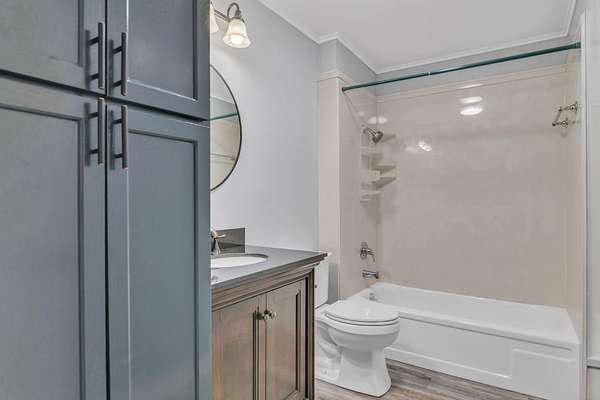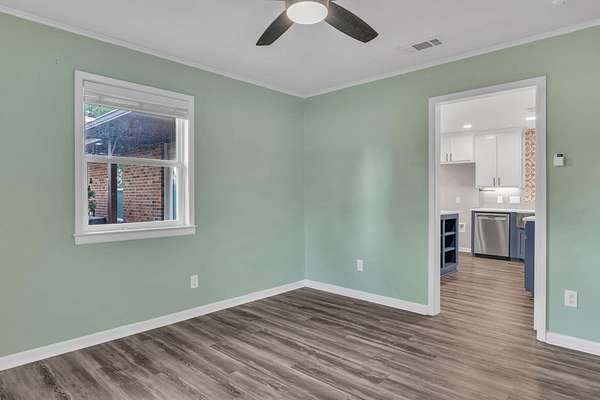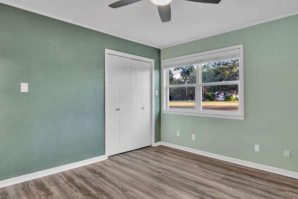 - Blinds, Cable TV, Ceiling Fan, Vinyl Flooring