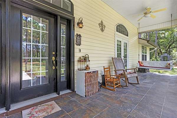 This property features 3 bedrooms plus an office, tall ceilings, wood floors, surround-sound wiring, a wood-burning stone fireplace, and an additional faux fireplace for added comfort. The layout feels open and inviting, and the home provides excellent storage, functional living space, and peaceful views in every direction. The large screened rear porch and the spacious front porch with swing allow you to enjoy the outdoors year-round.