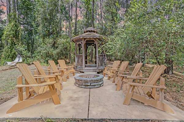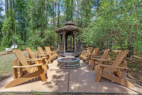 The property is supported by two septic systems and a private well, increasing overall utility capacity and long-term convenience. The peaceful, tree-lined acreage includes a built-in gazebo with fire pit, natural walking areas, open green space, and plenty of room for gardens, animals, outdoor recreation, or equipment.