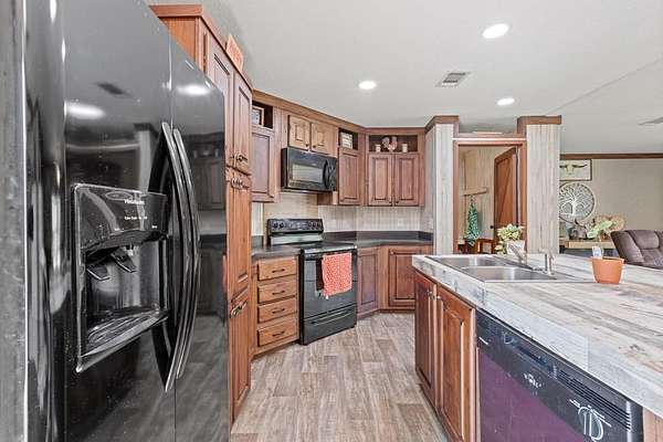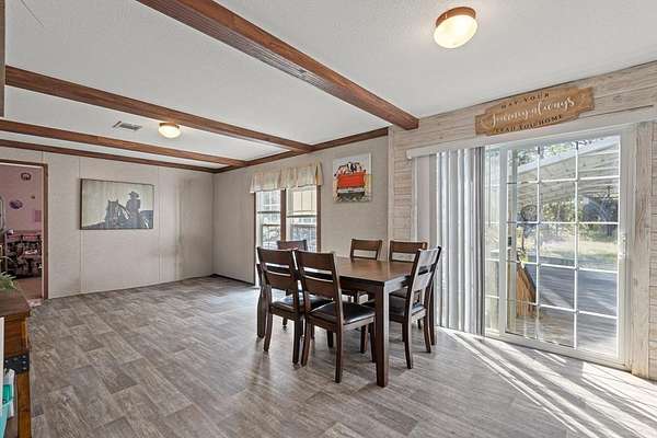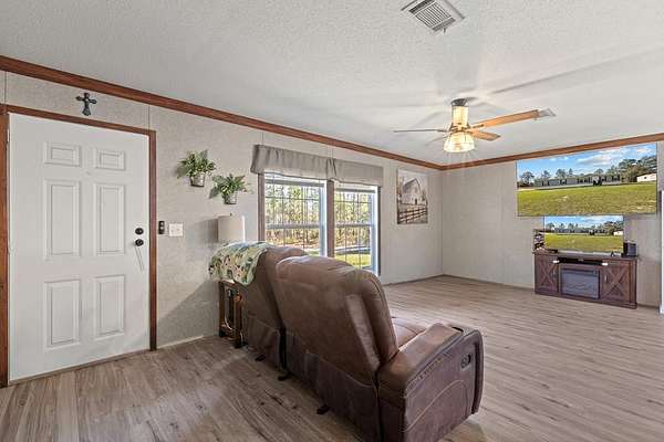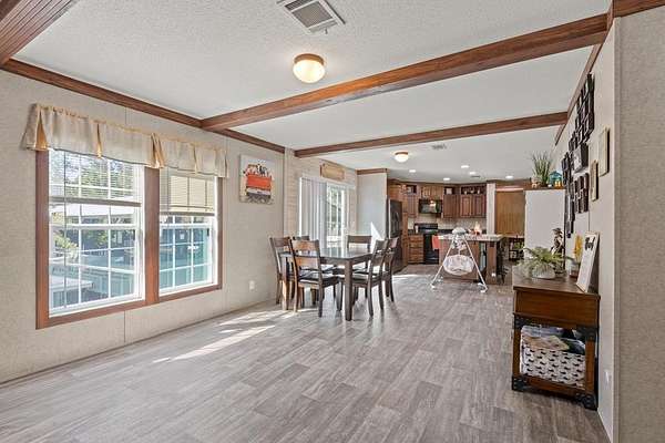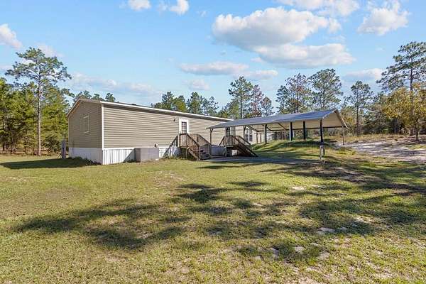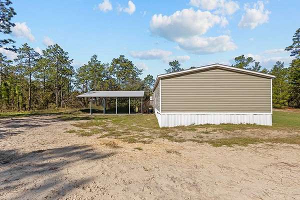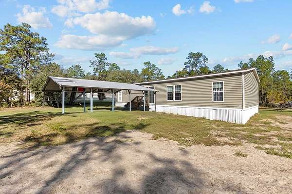 Spacious and beautifully maintained 4-bedroom, 2-bath 2020-built mobile home on 1.84 acres in peaceful Morriston, FL, located in Levy County and not in a flood zone. This homesteaded property offers 1,836 sq ft of heated and cooled living space with a massive open floor plan. The large living area flows into a stunning kitchen featuring wood cabinets, a huge island, and gorgeous LVP flooring throughout the main areas. Bedrooms are carpeted for comfort, and all rooms are generously sized with ample storage, including walk-in closets. The master suite includes a luxurious soaking tub and a walk-in shower for ultimate relaxation. The dining area is accented with beautiful exposed beams, adding a classy and cozy touch. The home also includes ceiling fans throughout, a separate laundry room with washer/dryer hookups, and an electric stove with microwave hood. Just outside the back door, you'll find a 2-car detached carport--perfect for protecting your vehicles or storing outdoor toys. The yard is partially landscaped and includes a fruit-producing peach tree, adding a charming and practical touch to the outdoor space. There's plenty of room to garden, add more trees, or simply enjoy the peace and quiet of country life. Built in 2020, this modern mobile home combines the best of rural living with convenience--just 30 minutes from Gainesville, Ocala, and Crystal River, giving you quick access to city amenities, hospitals, shopping, and recreation. These newer homes are built to last, and this one is move-in ready. 2024 property taxes were under $1,900. Don't miss this incredible opportunity to enjoy peaceful country living with all the comforts of a modern, well-built home!
