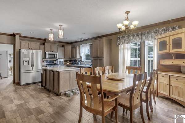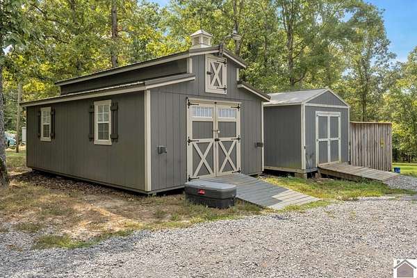 Spacious Retreat in Cadiz (Trigg County) - A True Country Haven! Nestled just minutes from Ft. Campbell and Dover, TN, this expansive property offers the perfect blend of tranquility and convenience. The inviting home features 3 generously sized bedrooms, 2 full bathrooms, and a bright and airy oversized laundry room that doubles as extra storage space. The heart of the home is the large kitchen and dining area, perfect for gatherings and entertaining. A cozy fireplace in the den adds a touch of warmth and charm to this already impressive living space. Set on a sprawling 8.8-acre lot, the property boasts a wealth of outdoor amenities, including multiple storage sheds, a chicken coop for hobby farmers, and even a serene pond--ideal for fishing or simply enjoying the peaceful countryside views. For the outdoor enthusiast, there's a deer stand to enjoy wildlife watching or hunting right in your own backyard. HES Fiber internet at home.