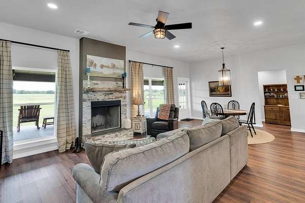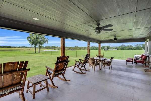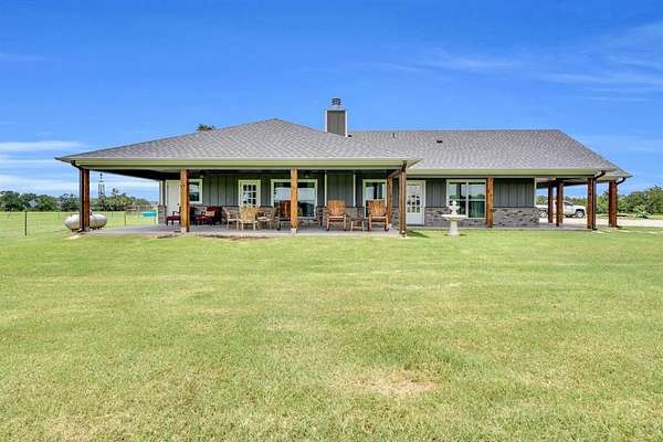 Discover the perfect blend of modern living and rural tranquility. This property offers a unique opportunity to own a spacious open concept home with expansive views from the massive back porch or the comfortable front porch. 8x8 solid rough cut cedar beams carry the load around the house and add an additional element of beauty. Great thought went into building this beautiful home. All outside walls are 2x6 and the entire home is foam insulated. The kitchen offers matching GE Cafe appliances, a gas range with double ovens and smart technology, an abundance of cabinet and countertop space with beautiful butcher block and quartz counters. A walk in pantry is large enough for all your essentials. Cabinets throughout the home are shaker style with slow close doors and drawers. Large closets throughout for extra storage. The primary bedroom is a true retreat. It offers access to the back patio as well as large windows to enjoy the view. There are two water heaters so you never wait long for hot water. The mechanic, woodworker, or family with livestock equipment will find the shop offers more than enough space. Built with extra concrete down the center you can add a car lift or get the heavy machinery inside for maintenance. The shop is foam insulated with a full bathroom and laundry area as well as a loft perfect for extra storage or a hangout spot. There is water and sewer dump available for an RV hookup under the east side awning. 220 outlets on both inside and outside the shop. If you are a horse or cattle lover you will appreciate the 17+ acres of quality coastal bermuda, the stock tank that was recently stocked with bass and brim, and the pin area. There are light switches to control outdoor plugs for Christmas lights in the front and back of the house. Only about a mile from the boat dock for easy access to Lake Palo Pinto. Expect the lake to grow as Turkey Peak Resevoir is planned to double the water capacity. There is good water if you want a well.