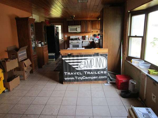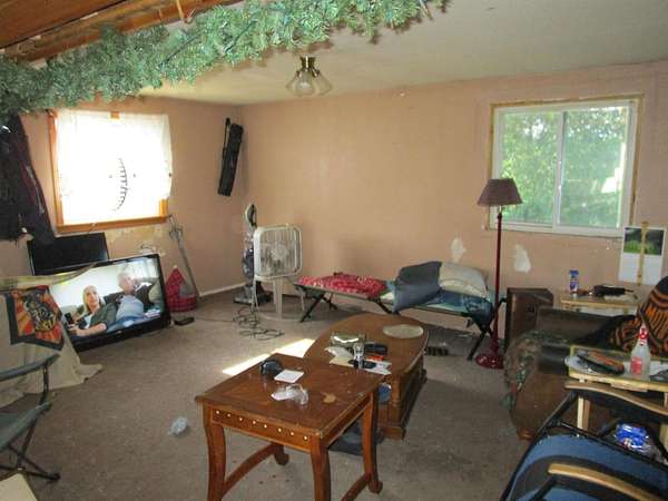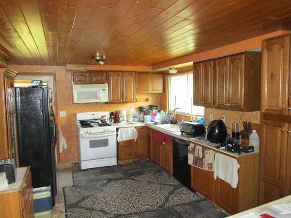 This double wide mobile home is a diamond in the rough. This home is being sold as-is. This home does need some work, is a 2 bedrooom with one bath. 2 car tuck under garage, full basement, and large pole building. All on 5.4 Acres of Land.