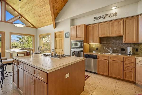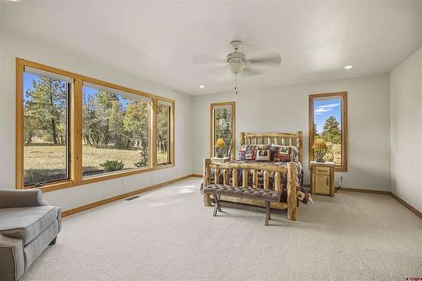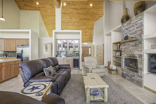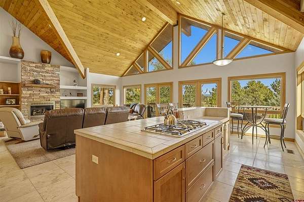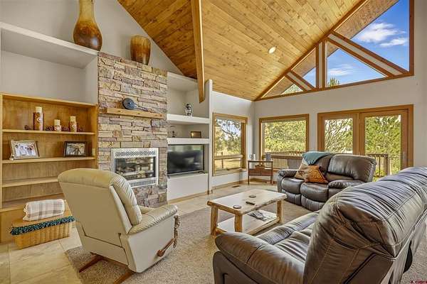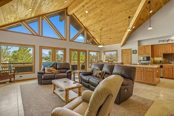 Marcie Lewis, Jann C Pitcher Real Estate, C: 970-759-8672, marcie@janncpitcher.com, www.crenmls.com: This single-level ranch-style home offers 3 bedrooms, 2.5 baths, and a versatile bonus room that can easily serve as a 4th bedroom, playroom, workout space, or home office--designed to adapt to your lifestyle.Inside, vaulted tongue-and-groove ceilings and a striking stone fireplace immediately create that welcoming Colorado feel. Expansive windows flood the open floor plan with natural light, highlighting the spacious great room--perfect for gathering and entertaining. Granite countertops, walk-in closets, generously sized bedrooms, a formal dining room, and a stylish wet bar are just a few of the thoughtful touches that blend function and sophistication throughout the home.After a long day, step out to the back deck to take in the sweeping views of Pagosa Peak and the North Range. The low-maintenance yard means more time to enjoy the Colorado lifestyle you've been dreaming of. Pleanty of elbow room on this 3 acre parcel.Set on a paved street and surrounded by other luxury homes in the highly sought-after Timber Ridge area, this home also features an oversized 2-car garage, providing plenty of space for vehicles, gear, and storage.With its combination of comfort, elegance, and functionality, this Timber Ridge property is truly a rare find.