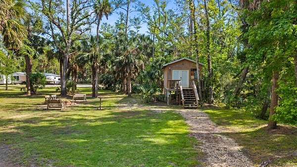 This unique property on Cooey's Island offers just under an acre of peaceful Old Florida living, complete with a scenic creek that leads directly to the Steinhatchee River. Tucked away from the hustle of scallop season, yet still accessible by golf cart or side by side ride to town, this property gives you the perfect balance of privacy and connection to everything Steinhatchee has to offer. Designed with both enjoyment and income in mind, the property features four RV hookups along with established rental history and future bookings already filling in for the upcoming scallop season. Rental history is available on file, making this a strong opportunity for those looking to step into an income producing property from day one. A small structure on the property is ready to be finished out into a kitchen, gathering space, and laundry area for guests or additional rental use, adding even more flexibility and potential. With city water and sewer already in place, much of the groundwork has been done for you. Whether you envision it as a family getaway, an investment property, or a mix of both, the possibilities here are wide open. Surrounded by woods and river views, it is the kind of place where the whole family can have fun, with room to roam, relax, and enjoy everything this area is known for. If you have been looking for a slice of Old Florida with income potential and room to make it your own, this one is worth a look.