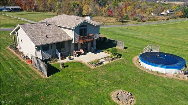 UNITY TOWNSHIP!! A PIECE OF PARADISE with a GORGEOUS VIEW!! Located CLOSE TO PENNSYLVANIA BORDER!! Over 1.5 ACRES!! TWO GARAGES for all of the TOYS!! This WONDERFUL HOME features Living Room with bay window; Family Room with WOOD BURNING FIREPLACE, hardwood flooring & French doors leading to newer 20x14 Newer CONCRETE PATIO; Full Bathroom with access to Laundry Room; Foyer with large closet; Kitchen with NEWER COUNTER TOPS, oak cabinetry, bay window, breakfast bar and pantry; Dining Area with French doors overlooking backyard; Master Bedroom with cathedral ceiling, walk in closet & French doors leading to BALCONY with a VIEW; Master Bathroom; Two Additional Bedrooms with large closets; BASEMENT WITH 12 COURSE BLOCK freshly painted in 2024 & ready for your Rec Room; Central Air; Oak Trim; Andersen Windows; newer 20x5 FRONT CONCRETE PORCH; BEAUTIFUL POOL with Deck (24' Around); Attached TWO CAR GARAGE and Detached 24x32 GARAGE!! Newer items include: Carpeting in Bedrooms/Hall/Steps-2025, Garage Door Opener-2025, Basement Painted-2024, Kitchen Counter tops-2023, Concrete Front Porch-2023, LVT Flooring-2022 on main level, Water Softener-2022, Roof Shingles-2021, Concrete Patio-2021, Holding Tank-2021, Furnace-2020 and Hot Water Tank in 2019. CALL TODAY to schedule your showing!! Owner Agent.