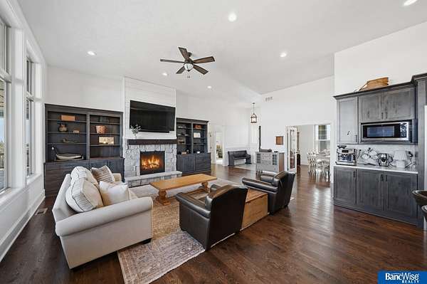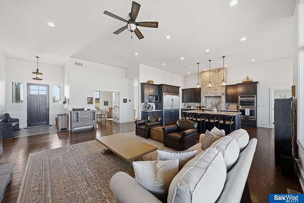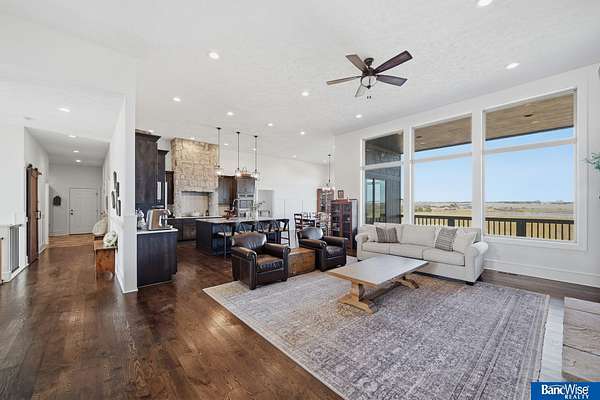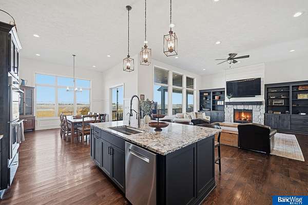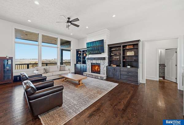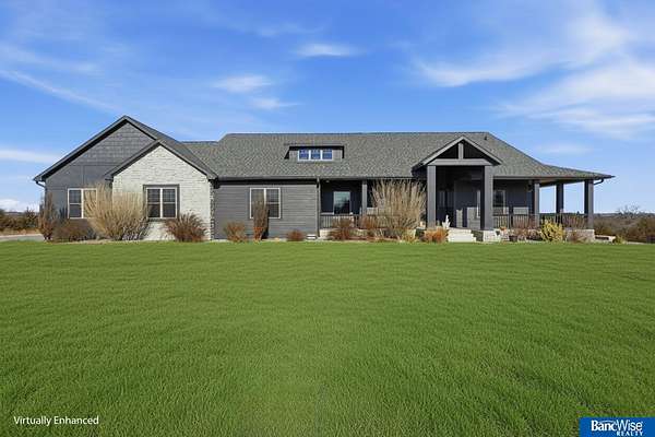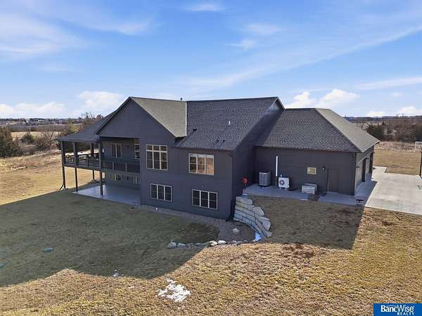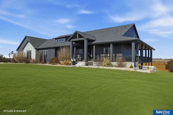 Feast your eyes on this incredible acreage you won't want to miss. From the moment you arrive, the beauty of this breathtaking setting is undeniable. Enjoy stunning sunset views over the pond from the deck or relax on the charming wraparound porch. Situated on 10 acres of pure paradise, this property offers privacy, space, and exceptional craftsmanship throughout. Step inside to 12-foot ceilings and meticulous attention to detail in every room. The home features five spacious bedrooms with generous closets and an open, inviting kitchen with plenty of space for entertaining. The walkout basement includes a massive rec room and a full second kitchen complete with all appliances, making it ideal for guests or extended living. A workout room or optional theater space adds even more flexibility. The extensive garage is heated and air-conditioned, offering room for multiple vehicles plus additional workshop space. This one-of-a-kind property is truly a rare gem--schedule your showing today.