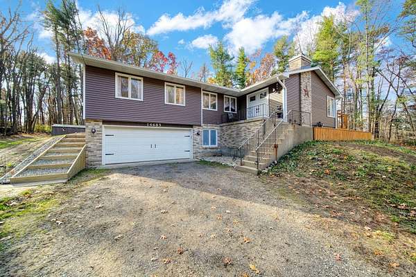 Welcome to this Jackson County gem conveniently located near I-94! A winding driveway through 6.49 wooded acres leads to a clearing where this meticulously maintained home sits. Offering 1,876sqft of living space plus another 1,296sqft of semi-finished space in the basement, this property delivers comfort, flexibility, & room to grow. Renovated top to bottom & inside out, with major improvements including: - Roof & Siding - Soffit & Gutters - Electric Panel - Pressure Tank - Flooring Throughout - Blown-in & Spray-foam Insulation - Professionally Cleaned Ductwork Inside, you'll find 3 bedrooms & 2.5 fully remodeled bathrooms, including a master ensuite. Step outside to a new deck overlooking the terraced yard with new retaining walls, 20x14 metal shed, & a 20x24 concrete slab out front-ready for a 2nd garage, workshop, man cave, or she-shed. If you're looking for a private, turnkey home with acreage, updates, & endless possibilities, this is the one you've been waiting for!