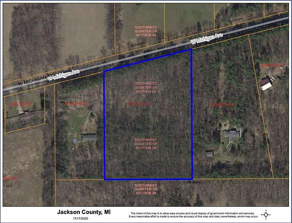 COM AT SE COR OF NE 1/4 OF SW 1/4 OF SEC 28 TH N89(DEGREES)56'W 625.38 FT FOR POB TH CONT N89(DEGREES)56'W 446.32 FT TH N00(DEGREES)08'E 579.24 FT TO CEN LN OF MICHIGAN AVE TH N75(DEGREES)36'E 460 FT TH S00(DEGREES)08'W 690.09 FT TO BEG. SEC 28 T2S R 3W