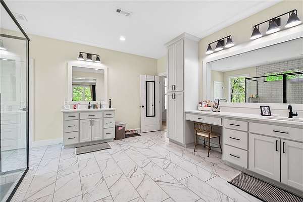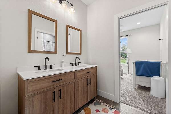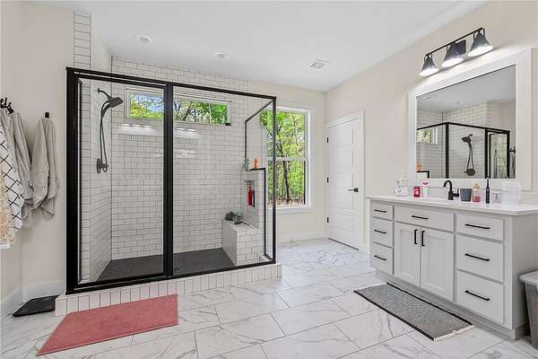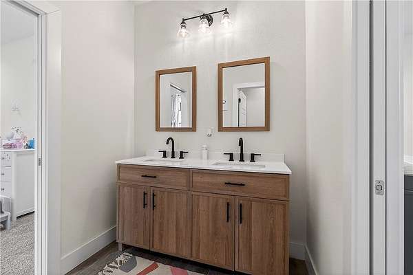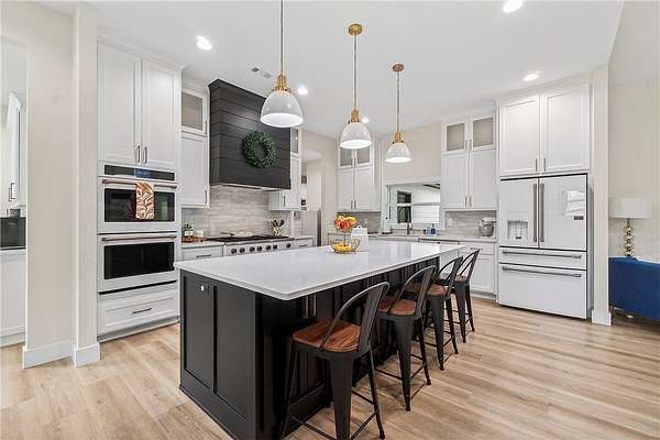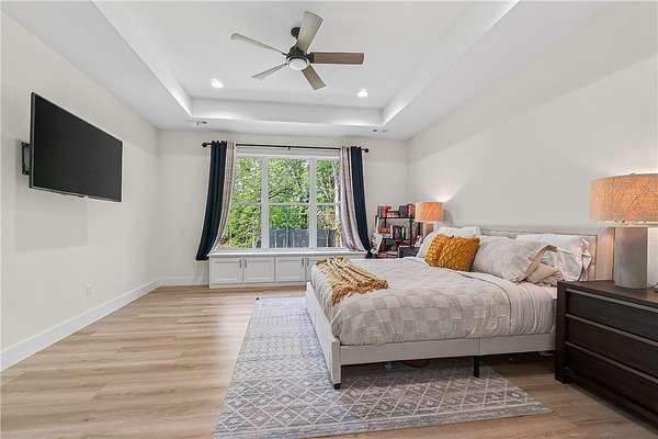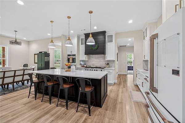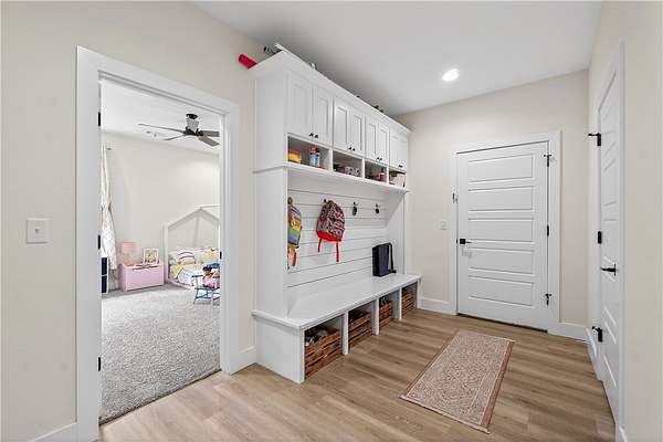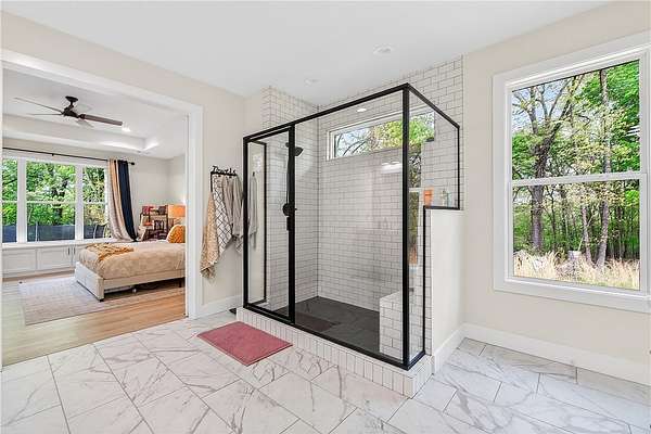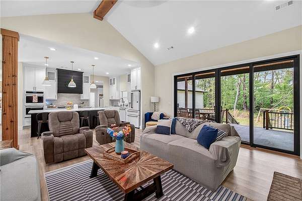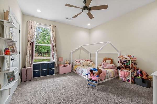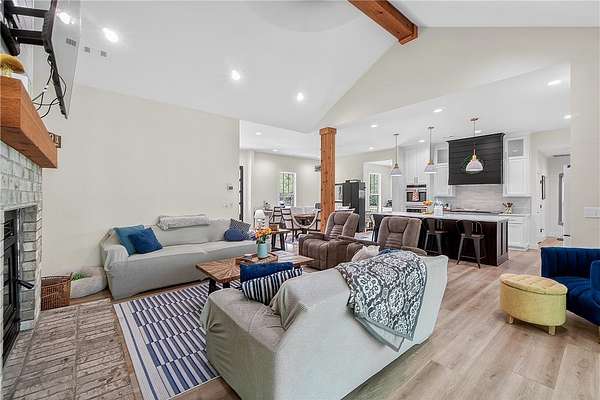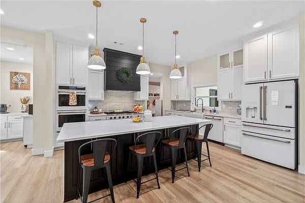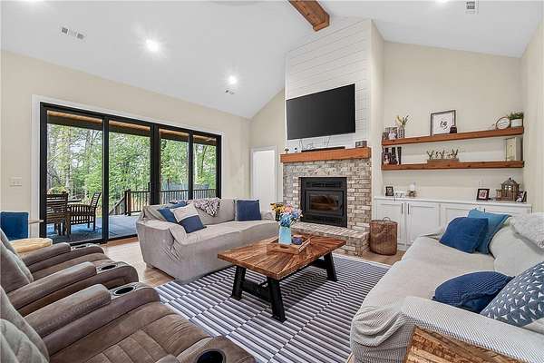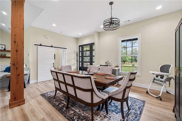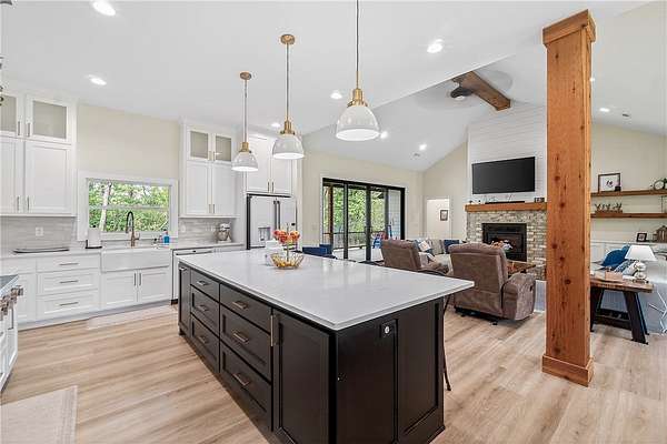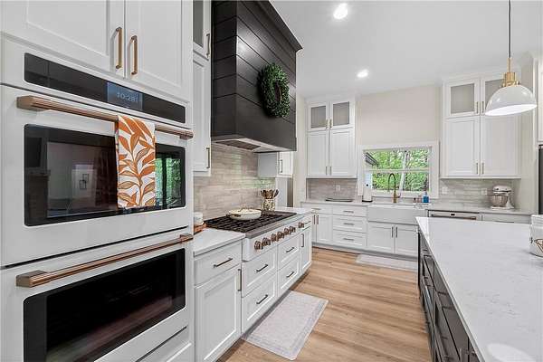 Like-new farmhouse-style home on 5 acres near Lake Wedington, where peaceful living meets everyday convenience just minutes from town. Step inside to an open, light-filled layout centered around a stunning chef's kitchen featuring double ovens, a 9-foot island, quartz countertops, commercial-grade gas cooktop, farmhouse sink, Cafe appliances, and a butler's pantry. The oversized primary suite offers a quiet retreat with a built-in window bench framed by four large windows overlooking the backyard. The en-suite bath includes dual vanities, a dedicated makeup area, and a spacious walk-in closet with built-in dressers. A standout feature is the finished bonus room off the garage, complete with a mini split, perfect for a movie room, game room, home office, or private guest space. Additional highlights include a dog wash station in the laundry room, energy-efficient foam insulation, instant hot water, two furnaces, and LVP flooring throughout and carpet in the jack-n-jill bedrooms.