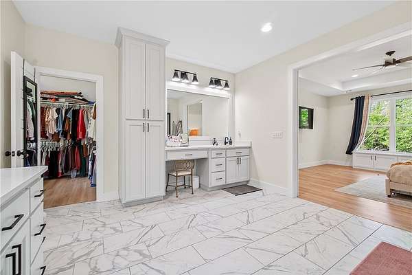 - Attic, Built In Features, Ceiling Fans, Pantry, Quartz Counters, Walk In Closets, Wood Burning Stove