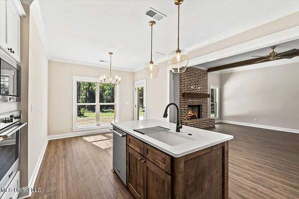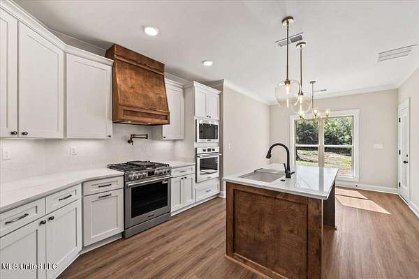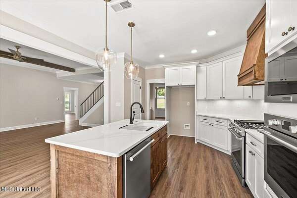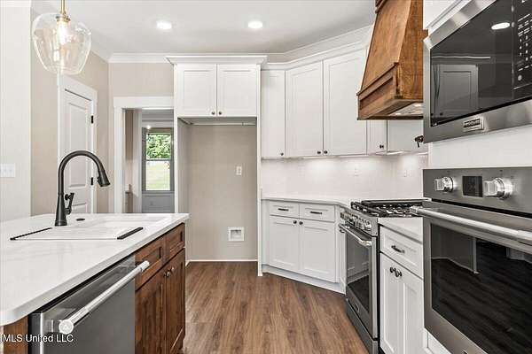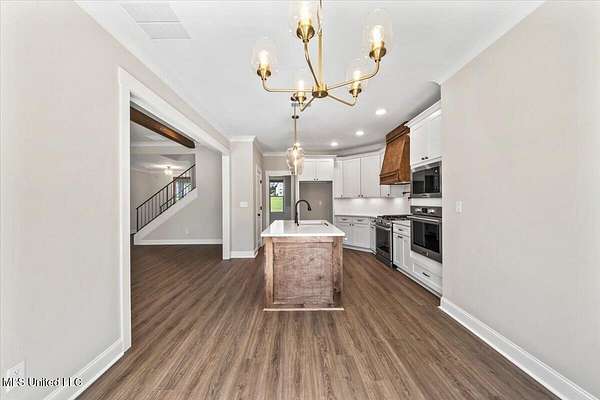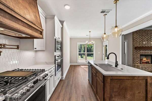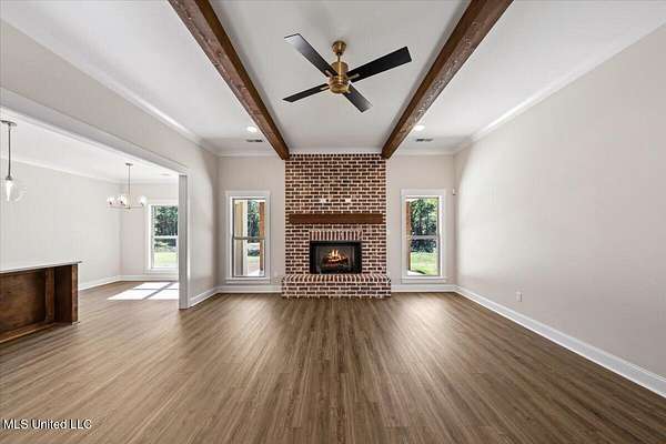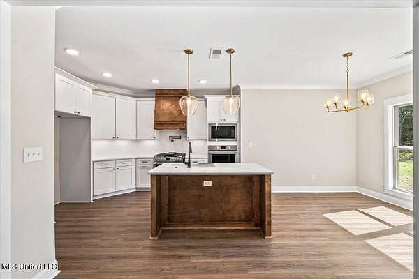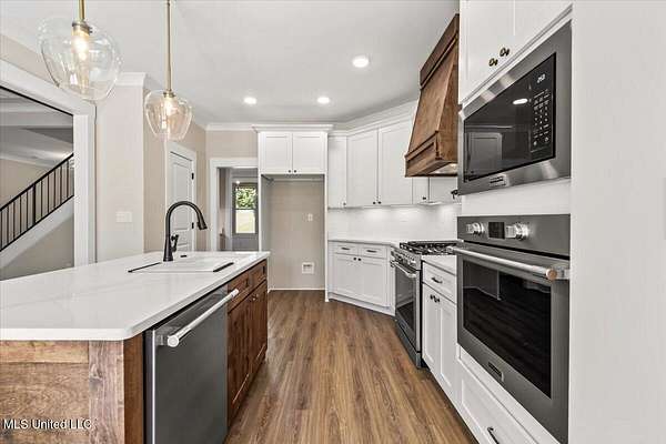 NEW Listing on a beautiful 1.7 Acre Lot surrounded by Beautiful Trees and offering great privacy at the end of a cove with no neighbors behind you ~ 4 Bedrooms, 3 Bathrooms, Bonus Room (BR5), Over 3000sf, 3-Car Garage, Outdoor Living ~ Custom Finishes and Designer Features throughout ~ Open and Split Floor Plan with Beamed Ceiling and Brick FP in the Great Room, Chef's Kitchen with Butler's Pantry with Floating Shelves, Custom Cabinets, Tile Backsplash, Under-Cabinet Lighting, Center Island, Upgraded Fixtures ~ Primary Suite with Soaker Tub, Separate His/Hers Vanity with 4 Drawer Stacks, Walk-In Shower with Dual Heads, and 2 Walk-In Closets ~ Bedroom 2 on the First Floor ~ Great Mud Area with Cubbies and Built-Ins just off the Garage Entry and Laundry Room with Cabinets, Granite Folding Counter ~ Upstairs find 2 more Bedrooms, an Over-Sized Bathroom, Multi-Purpose Bonus Room ~ Outside find a great Covered Porch with Extended Patio opening to a huge back yard with room for a pool ~ Additional Features: LVP Wood Floors in Primary Bedroom and Bedroom 2, Security System, Low E Vinyl Windows, Shaker Doors and Trim, Crown Molding, Wood Shelving, Granite and tile showers in all bathrooms, Walk-In Floored Attic, Tankless Water Heater, Tongue and Groove Exterior Porch Ceilings, Exterior Security Lighting, Soffit Lights, Gutters, Garage Keypad and more... Check back for updated photos and info.