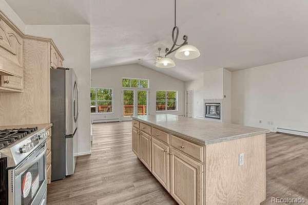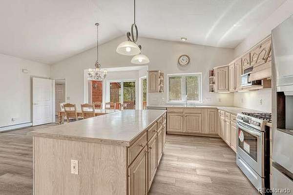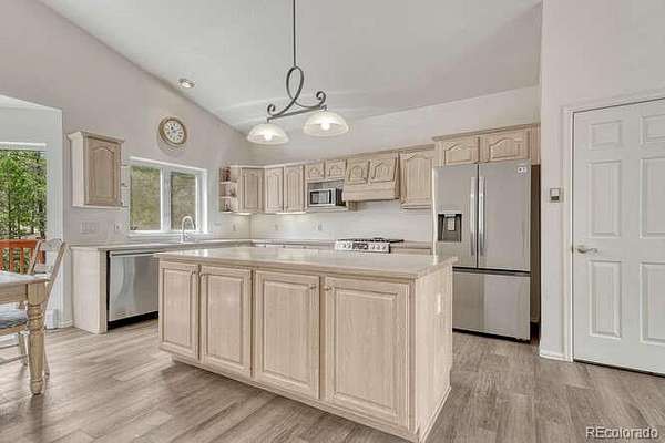 - Eat-In Kitchen, High Ceilings, Kitchen Island, Open Floorplan, Pantry, Primary Suite, Smoke Free, Tile Counters, Vaulted Ceiling(s), Walk-In Closet(s)