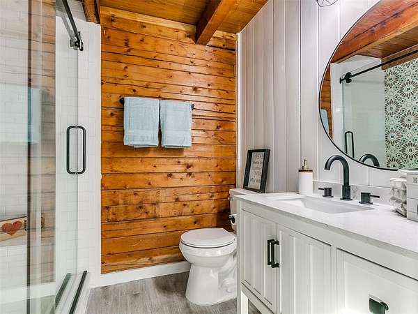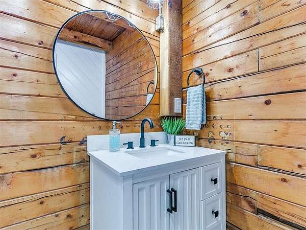 Updated Log Cabin Retreat on 9.5+ Acres in Choctaw! Just 15 minutes from Tinker AFB, this modern log cabin blends rustic charm with today's conveniences. Set well back from the road for privacy, the home welcomes you with a wide, covered front porch stretching across the front-perfect for relaxing and enjoying the peaceful surroundings. Inside, you'll find modern finishes thoughtfully integrated with classic cabin character. The home offers 3 bedrooms and 3 beautiful bathrooms, including a private bedroom with its own side entrance-ideal for guests or multi-generational living. An upstairs loft provides a quiet retreat for a home office, reading nook, or flex space. With over 9.5 acres to roam, this property offers the perfect balance of country living and easy access to the city.