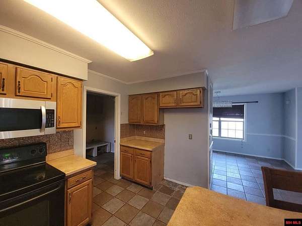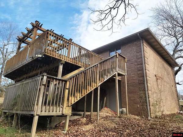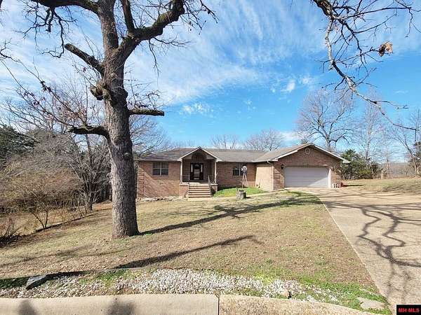 Diamond in the rough! Great location, on dead end street. A quiet cul de sac, 1 level quality brick home with 2 bedrooms, 2 baths and 2 car garage. 1560 sq. feet. This home is being sold "as is where is" so it could be a flip for investment, rental or resale. Or take your time and fix it up for your taste and live happily ever after. Some appliances remain, solid oak cabinets and stone countertops. Bay window, ceramic tile and laminate flooring, ceiling fans. Primary has 2 walk in closets, large shower and spa tub. Attached elevated deck off living room, outdoor stairs to lower-level walk in crawl space great for storage! Two lots convey with home total of 2.15 ac. m/l. Cotter Schools, shopping and medical nearby. White River and trout fishing only a short distance from this home, VRBO possibility. Opportunity waiting.