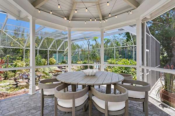 - Courtyard, Garden, Lighting, Pool, Private Mailbox, Sauna, Security Lights, Sliding Doors, Tennis Court(s)