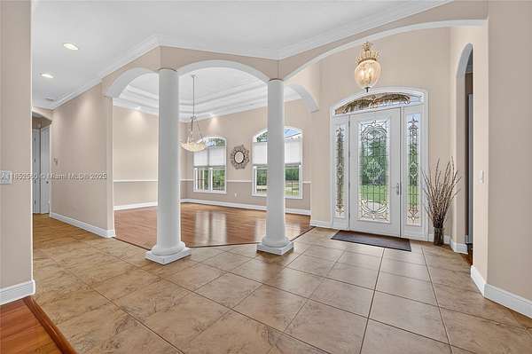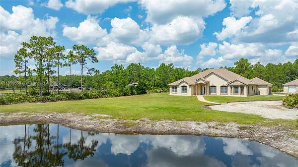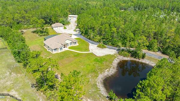 Nestled on 10 tranquil acres in an exclusive gated community, this exceptional estate blends custom craftsmanship with contemporary convenience, embodying elegance and comfort. Completed in 2009, the stunning home features 4 bedrooms plus a den, 3 full bathrooms, and an attached two-car garage, totaling 4,742 square feet for unparalleled privacy. The property also includes two additional structures for storage, garage space, or a workshop. Additional highlights: o Attached two-car garage and oversized workshop o Generac home generator o Hurricane-impact windows o 2 tankless water heaters and efficient HVAC systems o Serene private pond Enjoy luxury, privacy, and tranquility. Schedule your private tour today!