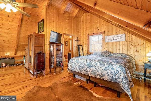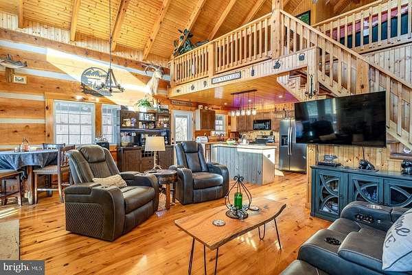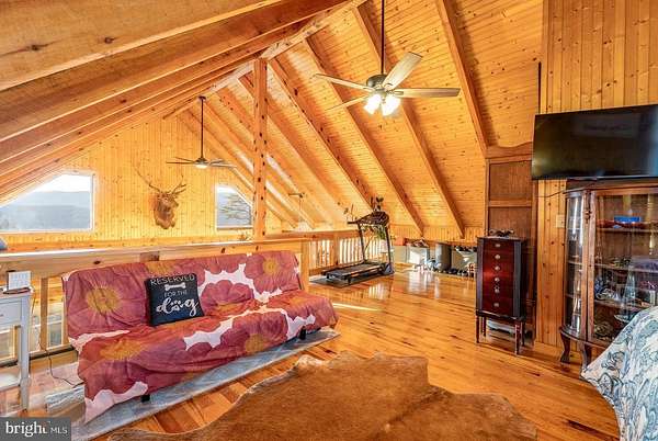 ALMOST HEAVEN could be yours! You will be amazed by what you find at this phenomenal property located in Potomac Valley Overlook on the Pendleton/Hardy County line. Log home with beautiful (mostly pine) woodwork throughout the interior, wrap around porch with views of mountains and valley, 2 bedrooms and bathroom on main level, spacious loft with bathroom. The large loft with its own bathroom has been the primary bedroom. Live edge counters in kitchen, remote controlled lights above kitchen cabinets can cast a variety of colors, and under cabinet lighting above washer and dryer add special touches to home. Mini split for heating and cooling with a wood burning fireplace to add to the coziness of this beautiful cabin. The huge detached 30X48 foot garage provides space for your vehicles or ATVs with space for workshop and ample storage. The garage is complete with 100 amp electric, 2 mini splits, whole house generator hook up, RV hook up, new air compressor, and more! Two chicken coops, dog kennel, and a greenhouse complete the ensemble of outdoor useful building improvements. All of this on 8 acres of private bliss WITH MOUNTAIN VIEWS!