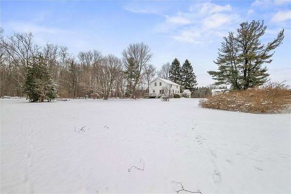 Own a piece of history on 1.57 private, level acres surrounded by picturesque farmland! This charming 3-bedroom, 1.5-bath home offers a rare opportunity to create your dream country retreat. With over 150 years of history, this home is full of character--and even local lore, including stories of its use on the Underground Railroad, featuring a hidden room tucked behind a living room bookcase. The second floor features 3 generously sized bedrooms and a full bath, while the main level offers a functional layout ready for your personal touches. Step outside to enjoy the peaceful setting, complete with mature fruit trees and established blackberry, raspberry, and blueberry bushes. A spacious side deck off the kitchen is perfect for relaxing or entertaining. Additional highlights include a large open basement with shelving for canning and storage, two detached garages (3 total stalls) plus a shed for vehicles and equipment, and a handicap-accessible ramp to the front door. Major updates provide peace of mind, including a newer roof, garage roof, and a whole-house Generac generator--all approximately 3 years old. Updated electrical, an upright freezer, and an HSA Home Warranty are also included. With a little flooring and paint this one-of-a-kind property can truly shine. Don't miss this unique opportunity to own a historic home with acreage, privacy, and endless potential and Low LOW taxes!
