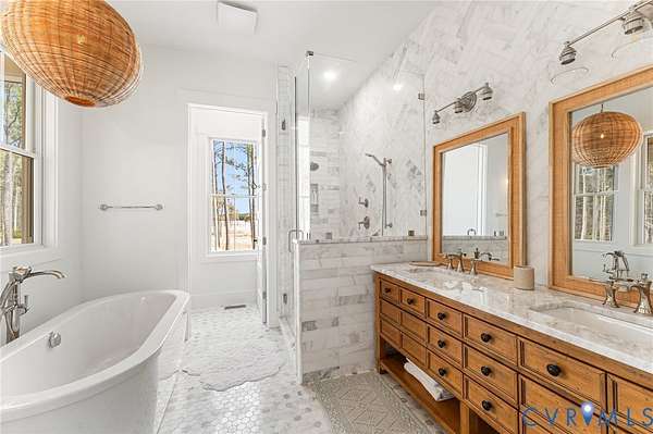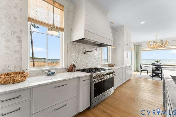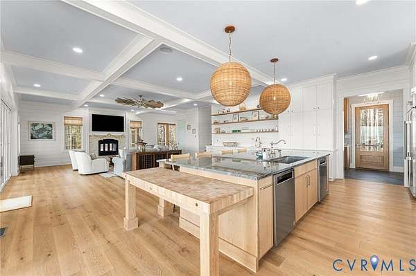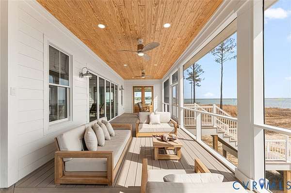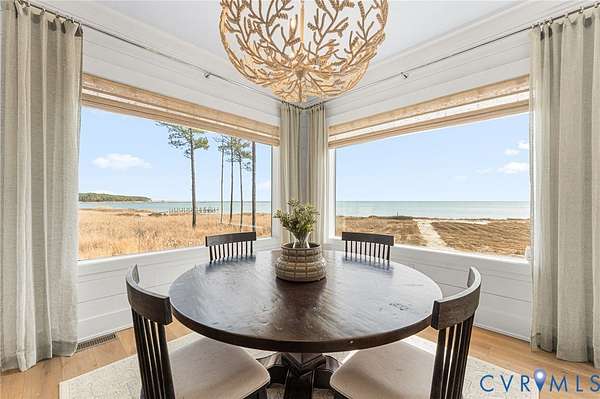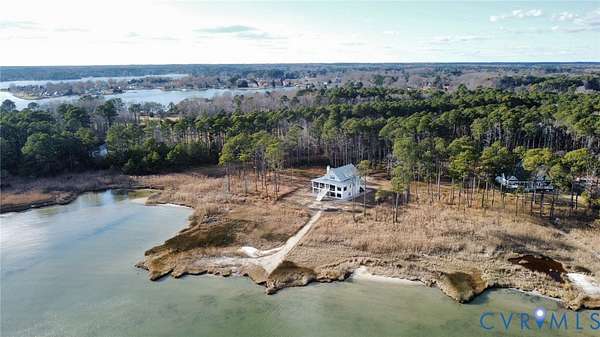 Welcome to 147 Galway Bay on Barne's Creek, an exceptional 2024 built bayfront residence located within the private waterfront community of Galway Bay. Set on 1.9 acres with 3,487 sq ft, this designer home captures sweeping views of the Chesapeake Bay and offers a natural private shoreline, just around the corner from Indian Creek Country Club. Hardwood floors flow throughout, anchored by a soaring two-story family room with a dramatic double-sided fireplace visible from both inside and the outdoor deck. The screened porch delivers breathtaking Bay views, while the first-floor primary suite offers true main-level living. The kitchen is a showpiece with a massive stone island, premium selections, two dishwashers, oversized gas range, and full-size refrigerator. Designer lighting, fixtures, and hardware elevate every space. Custom bunk rooms upstairs provide bonus guest flexibility. Owner holds conceptual plans for a future guest house, pool, and private pier. Located in Virginia's Northern Neck near Kilmarnock, a rare opportunity for nearly new luxury bayfront living.