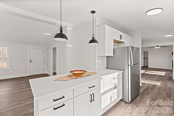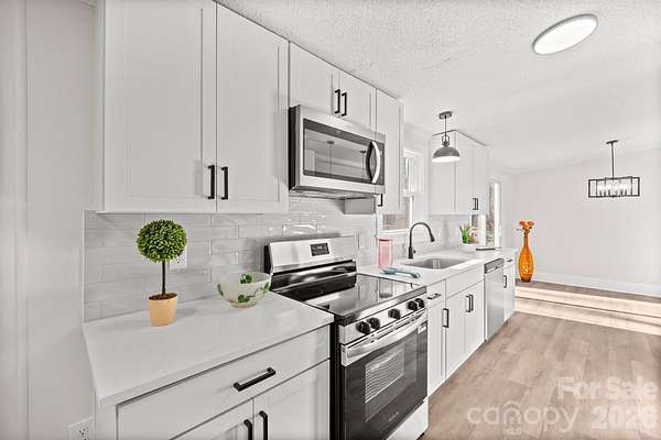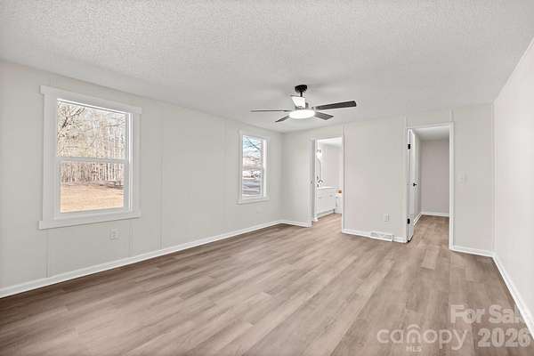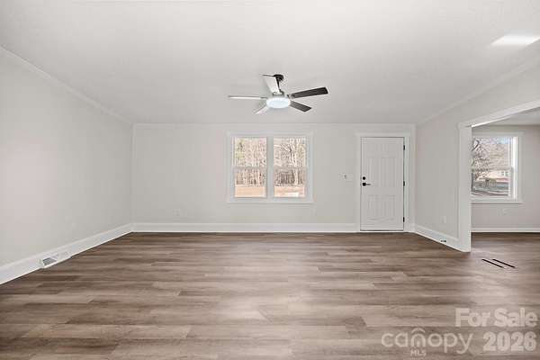 Welcome to this fully renovated and remodeled property just minutes from Lake Norman, offering space, style, and freedom with no HOA. This beautiful home in Troutman, NC features a flowing, open floor plan designed for both everyday living and entertaining. The home offers 3 bedrooms plus 2 bonus rooms, giving you incredible flexibility for home offices, playrooms, or guest space. The remodeled kitchen shines with granite countertops, white cabinetry, stainless steel stove, microwave, and dishwasher, a walk-in pantry, cozy breakfast area, and a separate dining space. The spacious living room opens seamlessly to the kitchen, while a den with fireplace provides an additional inviting gathering space. The primary bedroom retreat includes an ensuite bath with dual-vanity sinks, a separate sitting room, and two walk-in closets-your own private dream space. Step outside to a huge back deck overlooking an enormous fenced backyard, perfect for entertaining, pets, or simply enjoying the outdoors. Additional highlights include new windows throughout the home (except 1-2 that did not require replacement), new ceiling fans throughout, a 2021 heat pump, 2023 water heater, and a 2022 roof (per previous seller). The home is all-electric with no gas. Don't miss this move-in-ready home with modern updates, generous space, and a prime Troutman location near Lake Norman-schedule your showing today!