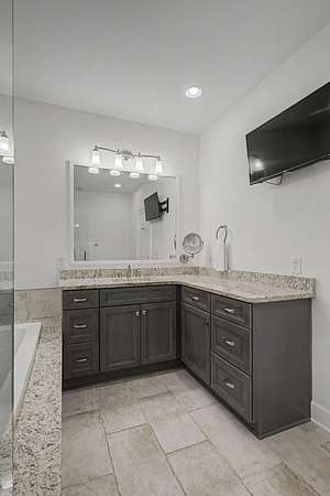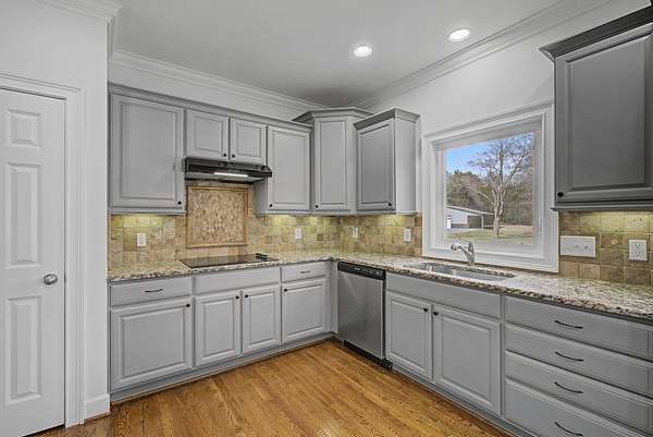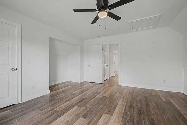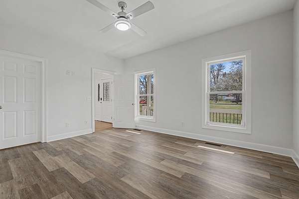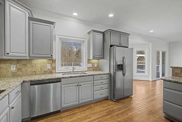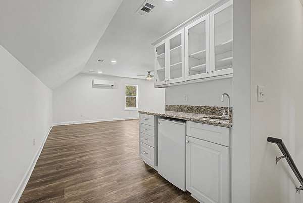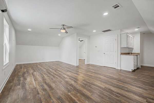 Inside, the home features a spacious primary suite with large closets; an updated kitchen with granite countertops and stainless steel appliances; a pantry; hardwood flooring; and new LVP throughout. Upstairs offers two generously sized bedrooms with a full bath, while the main level also includes a large bonus room with a wet bar, full bath, and a 4th bedroom or office space—perfect for guests, entertaining, or working from home.