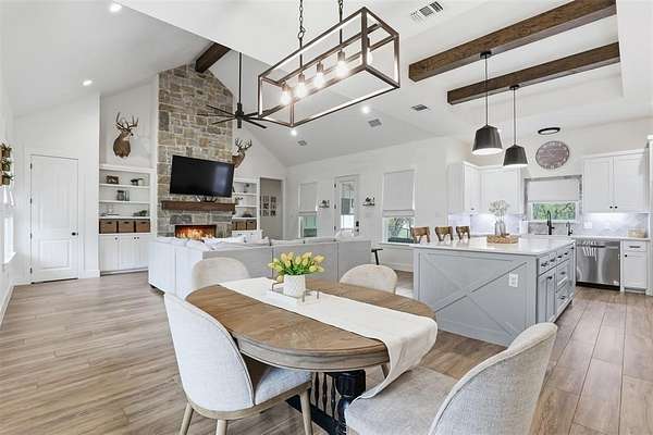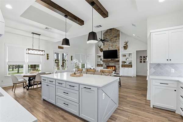 - Built-In Features, Cathedral Ceiling(s), Decorative Lighting, Double Vanity, Eat-In Kitchen, Kitchen Island, Open Floorplan, Paneling, Pantry, Walk-In Closet(s)