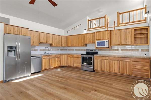 Enjoy wide-open views from this 20-acre property in Columbus, Montana. Bordering state land offering river access and private riding trails. The home features 6 bedrooms and 3 bathrooms, including a 600 sq ft loft ideal for a primary suite, guest space, or additional living area. The large kitchen and main living room open to a spacious deck, creating a natural setup for entertaining or taking in the surrounding landscape. The entire home has been refreshed creating a clean modern feel. Inside, the open layout is enhanced by high ceilings and large windows that bring in abundant natural light. An oversized 3-car garage provides ample room for vehicles, storage, and workspace. With flexible living spaces and expansive land, this property offers room to live, grow, and enjoy Montana living.