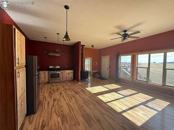 Welcome home to your quaint adobe off grid home sitting on 5 acres! The layout of this home has great use of its 758 square feet! Kick off your shoes in your entry and then enter into your open living, dining, and kitchen combo space. The large windows flood this space with natural light and great views. The wood burning stove and solar radiant heat are great sources of heat on those cold Colorado nights. Next is your primary suite and you are greeted by the same large windows, natural light, and views and adjoining bathroom. Your new home is on solar so there are no electric bills. If off grid living isn't for you, that's ok, connect to the grid! Pictures don't due this home justice so schedule your showing today and call this home tomorrow.