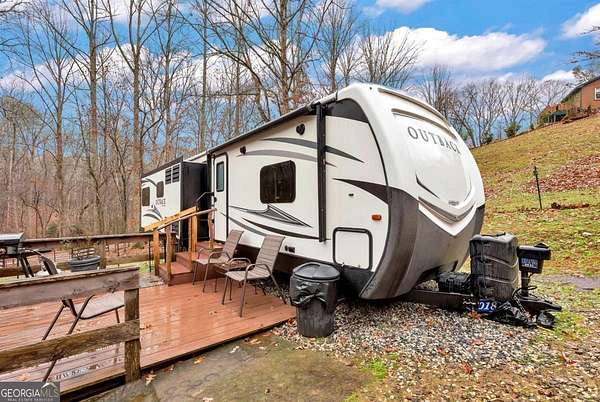 Charming Remodeled Cabin on 4.08 Acres with Private Pond & Luxury Camper Included Escape to your own private retreat! Nestled on 4.08 peaceful acres, this beautifully remodeled 2-bedroom, 1-bath cabin blends rustic charm with modern comfort. Thoughtfully designed at 936 sq ft, the efficient floor plan lives larger than expected and features an exterior-entry full unfinished basement-perfect for storage, a workshop, or future expansion. Step outside to serene views of your private pond just a few steps from the cabin. Near the water, you'll find an incredible bonus: a 2018 Outback Arctic Edge camper included with the sale. This high-end camper offers three slide-outs, upgraded furniture, backup camera, self-leveling system, heated floors, two refrigerators, two A/C units, a built-in stereo, and more. It has been climate-controlled year-round, making it an ideal guest house or a great short-term rental opportunity. Whether you're seeking a peaceful weekend getaway, a cozy full-time residence, or an income-producing property, this one-of-a-kind offering delivers endless potential in a truly picturesque setting. Don't miss the chance to own your own private slice of paradise!