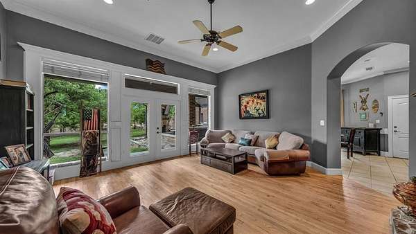 Major 2022 upgrades include Low-E windows, two TRANE HVAC systems with WiFi thermostats, fully encapsulated foam attic, added fresh air vents, WiFi garage doors for home-shop-barn, and a new 30-year composition roof. A Generac whole-home generator provides added peace of mind.