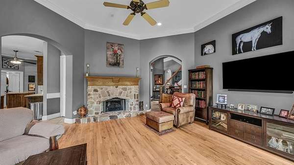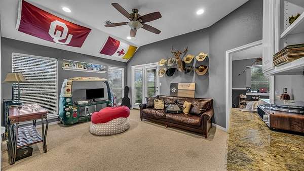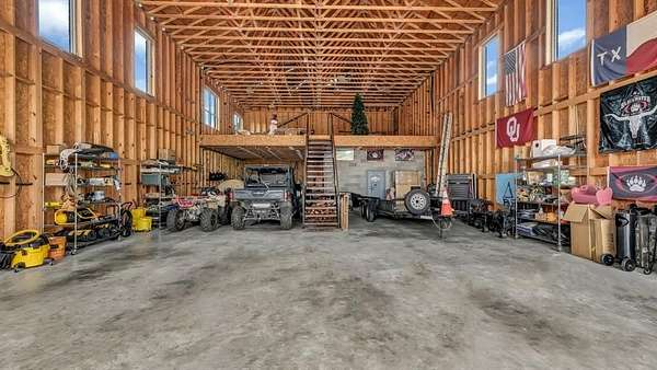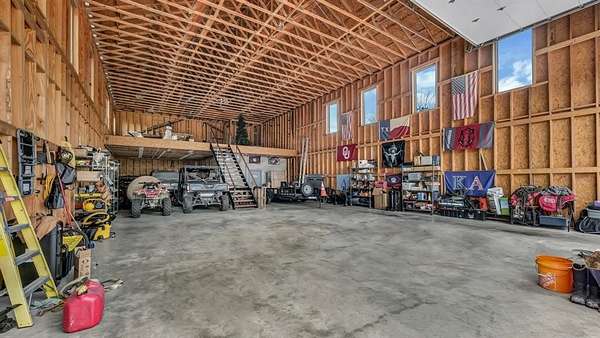 The 36’ x 65’ shop (36’ x 85’ overall with barn) offers incredible versatility with space for a gym or workspace, plus a heavily reinforced safe room with custom safe door and HVAC rough-in. The mezzanine level includes a full bath, wet bar rough-in, and is prepped for HVAC—ideal for office or entertainment space.