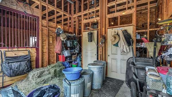 The barn features oversized foaling stalls with custom doors and windows, premium Stall Saver flooring, and plumbing for automatic waterers. It’s prepped for foam insulation, with feed and tack rooms roughed in for HVAC. Additional amenities include a wash rack, multiple water access points, and wide gates for easy equipment and livestock access.