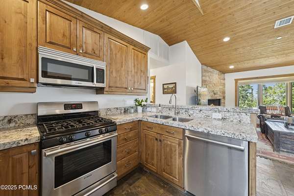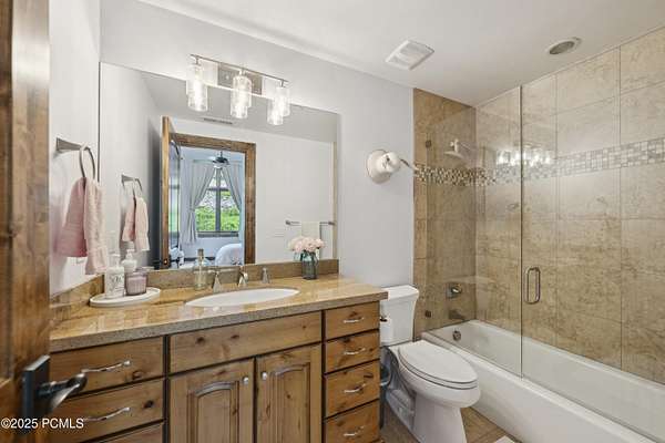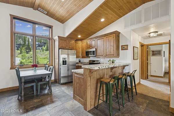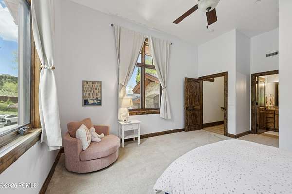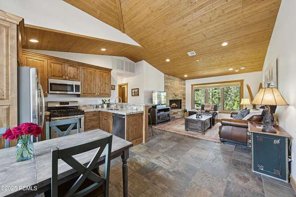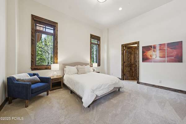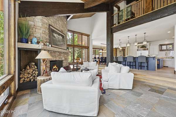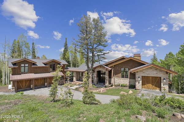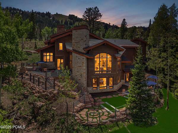 Perched atop The Colony, Park City's premier ski-in, ski-out, gated community, this recently refreshed, timeless mountain retreat offers unmatched privacy, stunning down-valley views, and seamless ski access in a truly unforgettable setting. Set on 4.6 wooded acres, the home was designed for comfort, connection, and year-round mountain living. The open floor plan features a spectacular great room with vaulted ceilings, exposed beams, a grand stone fireplace, and expansive windows that frame the breathtaking views. The updated gourmet kitchen is ideal for entertaining, complete with high-end appliances and generous prep space. The main-level primary suite includes a fireplace, dual closets, a jetted tub, and a steam shower, the ultimate apres-ski escape. Five additional en-suite bedrooms in the main home are thoughtfully located for comfort and privacy. Steps away, a charming 2-bedroom, 2-bathroom guest house offers its own kitchen, living area, fireplace, private hot tub, and ADA access, ideal for guests or extended stays. This incredible home offers premier ski access with direct ski in from three lifts, Dreamcatcher, Dreamscape, and Daybreak, and ski-out to six lifts. Enjoy unrivaled privacy, serene seclusion, and effortless access to some of the best uncrowded ski runs and legendary champagne powder, plus cooler, breezy summers above it all.