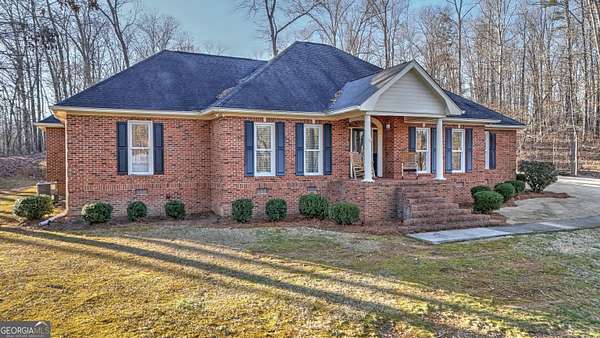 Beautiful custom built 4-sided one level brick home on 3.2 acres plus a guest house in the Model-Johnson school district. Looking for space, privacy, pool, outdoor kitchen, and bonus living quarters? This 3BR/2.5BA home sits on a private, wooded 3.2 acre tract and includes a separate guest house-perfect for in-laws, teens, or rental income. Inside the main home, you'll find updated white oak hardwood floors throughout, tray ceilings in the living room and master, 9ft ceilings, large crown molding, and oversized bedrooms, The master suite has a roomy bath with separate tub, shower, and a walk-in closet. The kitchen features granite countertops, brick backsplash, updated SS appliances, and a separate large dining room for hosting. The extra-large 2-car garage provides plenty of room for storage or projects. There is also a fenced back yard area ideal for pets or kids. Roof is roughly 10 yrs old. The guest house offers 1bed, 1bath, a full kitchen, living room and laundry--a complete private living space on its own. Outside, enjoy an above-ground salt water pool with a large deck, plus a covered outdoor cooking and entertainment area-perfect for gatherings. The property also includes two large outbuildings, a beautifully sodded and landscaped yard, walking trail, and peaceful wooded surroundings. Located in the sought after Model School Disrict, Main home: 2641 sq ft, guest house: 600 sq ft.