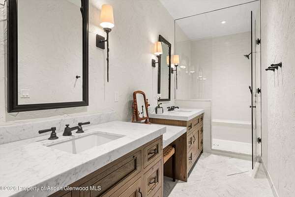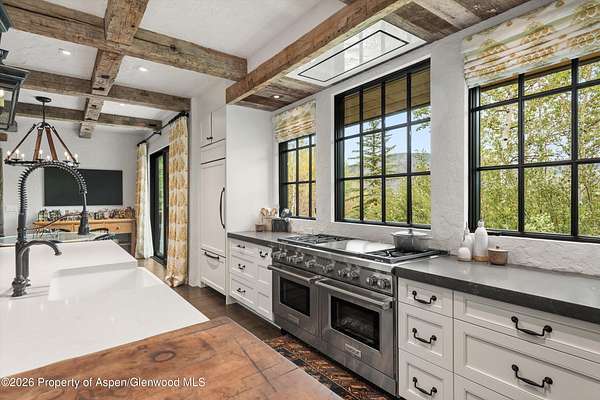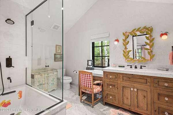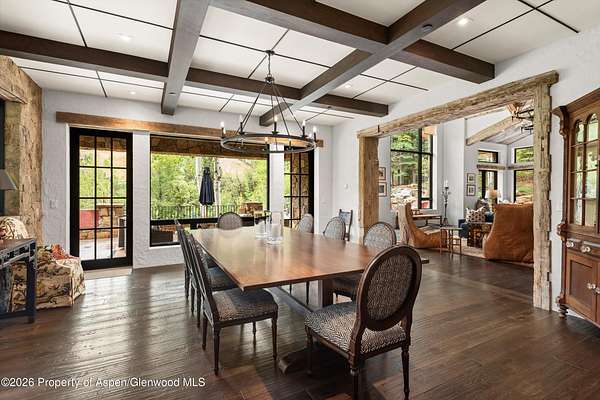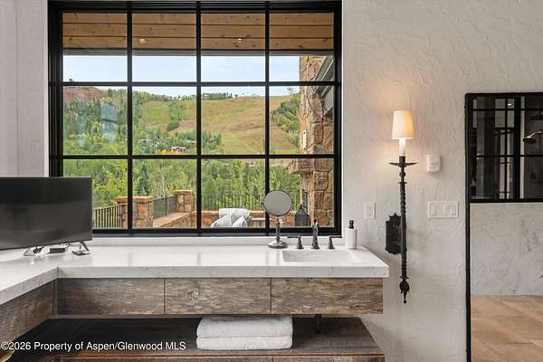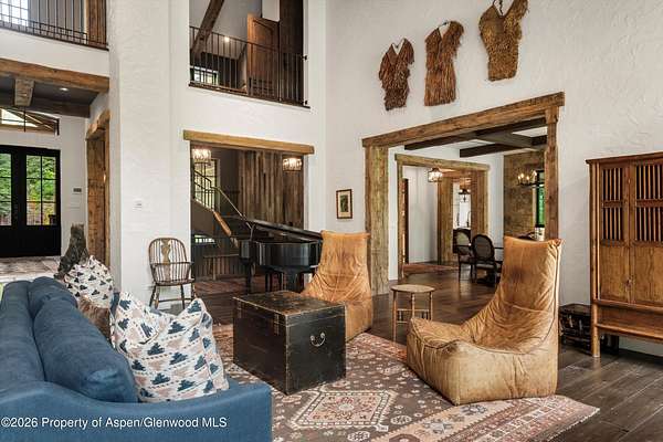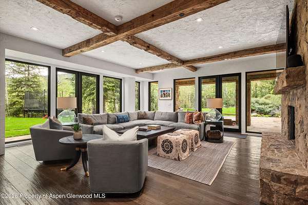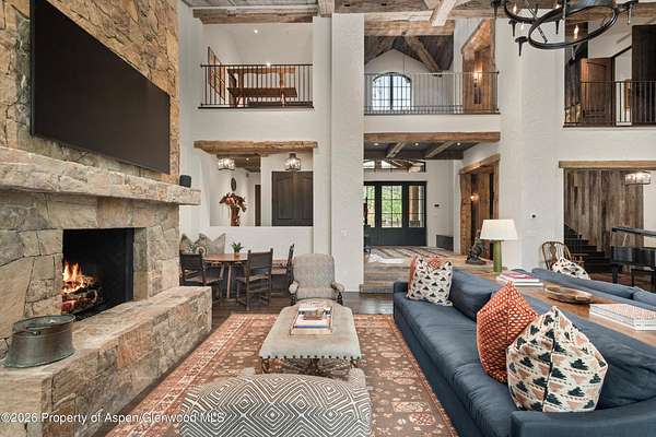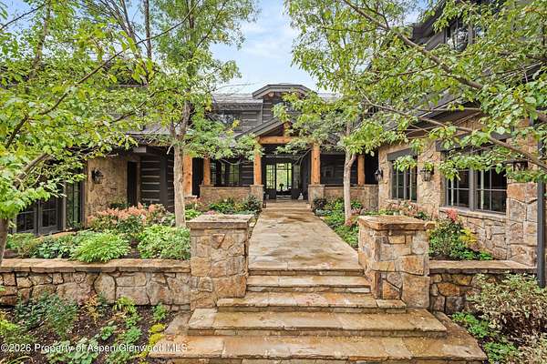 Adjacent to the Tiehack Ski area at Buttermilk, tucked among towering aspens and the sounds of Maroon Creek, lies one of Aspen's most remarkable opportunities. This rare dual-lot estate encompasses two adjoining parcels at just over six acres; combined permitting up to 24,000 square feet of living space. Together, they create the possibility of an extraordinary mountain compound - a rarity in Aspen. Step through the stone courtyard and into a residence where rustic mountain charm meets modern luxury. Newly and completely renovated, this 10,861-square-foot retreat offers 8 bedrooms, 7 full baths, and 2 half baths. Inside, stone and wood floors anchor the interiors to their alpine surroundings, while soaring windows frame commanding views of Aspen Highlands and the Thunderbowl ski run. The effect is both dramatic and grounding - the mountains feel like part of every room. The great room, accented with reclaimed timbers and a roaring fireplace, is designed to welcome both large gatherings and intimate conversations. Flowing seamlessly from this central space, multiple patios invite you outdoors to gather by the fire pit, listen to the serene waterfall, or simply take in the mountain horizon while Maroon Creek provides a natural soundtrack. The kitchen is its own private domain, thoughtfully crafted with dual workspaces. A scullery, prep kitchen, and butler's pantry allow the artistry of cooking to happen behind the scenes, while the main kitchen remains a hub for entertaining. Off the kitchen, a cozy den with fireplace offers the perfect retreat - a warm spot for the chef or family to unwind with a glass of wine and a book. The dining room, perfectly positioned between the kitchen and great room, invites family and friends to gather without ever feeling separate from the flow of conversation or the mountain views beyond. A lodge-like study adds another layer of retreat - with its fireplace, bar, and game tables, it's a room designed for late-night storytelling and laughter. Upstairs is the heart of family life. The primary suite is a sanctuary, complete with its own fireplace and wraparound deck. From here, mornings begin with coffee overlooking fresh snow on Thunderbowl and nights end to the soft rhythm of Maroon Creek below. The spa-inspired bath includes a soaking tub, walk-in shower, generous closet, and a fireplace for the ultimate sense of comfort. Four additional bedrooms, along with a central den, complete the upper level - offering privacy for family and guests within easy reach of the primary suite. The lower level extends the home's versatility with a secondary living room, perfect for movie nights or game-day viewing. Two additional ensuite bedrooms, a spacious mudroom with storage for every season, and a large laundry, storage area and two-car garage make this level as practical as it is welcoming. The backyard provides yet another venue for fun, games, and family memories. Directly beside the main residence lies 1400 Tiehack Road, an equally valuable component of this offering. Approved plans call for a beautifully landscaped guest house and pool - envision a one-bedroom suite with office, music room, ample storage, and additional garage bays. Yet the possibilities extend further. With ability to design a new main residence (totaling up to 10,000 square feet), this parcel allows the creation of a custom retreat to complement 1470 Tiehack - whether as a guest home, wellness sanctuary, or legacy estate for future generations. Here, lifestyle is defined by access and ease. The Tiehack lift is just steps from your door, inviting early-morning ski laps or evening skin-ups for fresh tracks at sunrise. Miles of hiking and biking trails unfurl in every direction, while downtown Aspen is a beautiful walk or short bike ride away via the Tiehack Bridge. Aspen Highlands, Snowmass Village, and the Aspen Airport are all within minutes. This is more than a home - it is a place to gather, retreat, and celebrate Aspen.